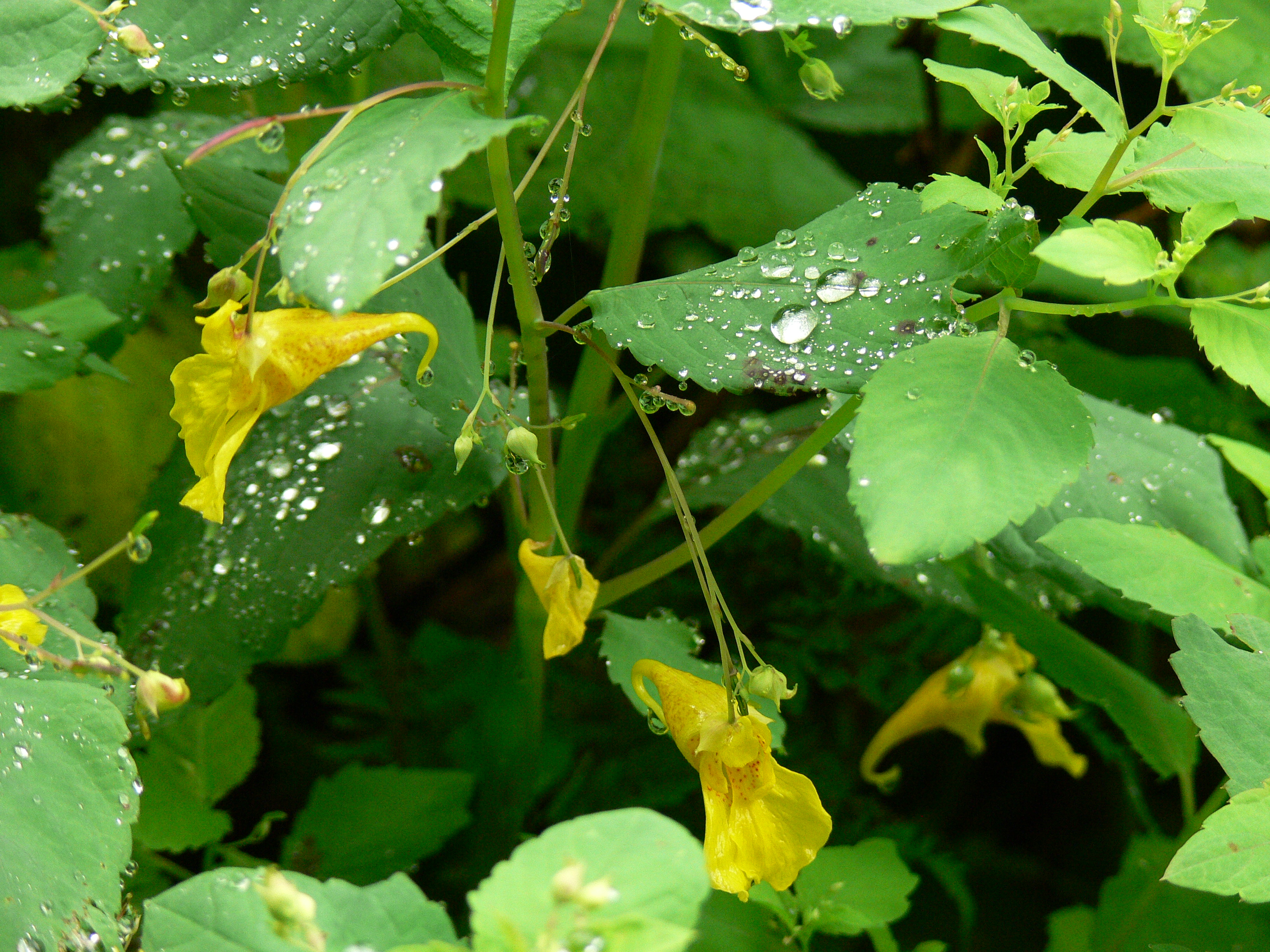 I’m alone today for Aki hikes with another dog out by the glacier. It’s a chance to discover whether she keeps the animals away on our walks. Yellow monkey flowers line this trail to the clouds. They take shelter from the rain beneath leaves, attached to their mother plant by a thin fiber. I’d expect a strong breeze could knock them to the ground but they thrive in this wind tunnel of a mountain valley.
