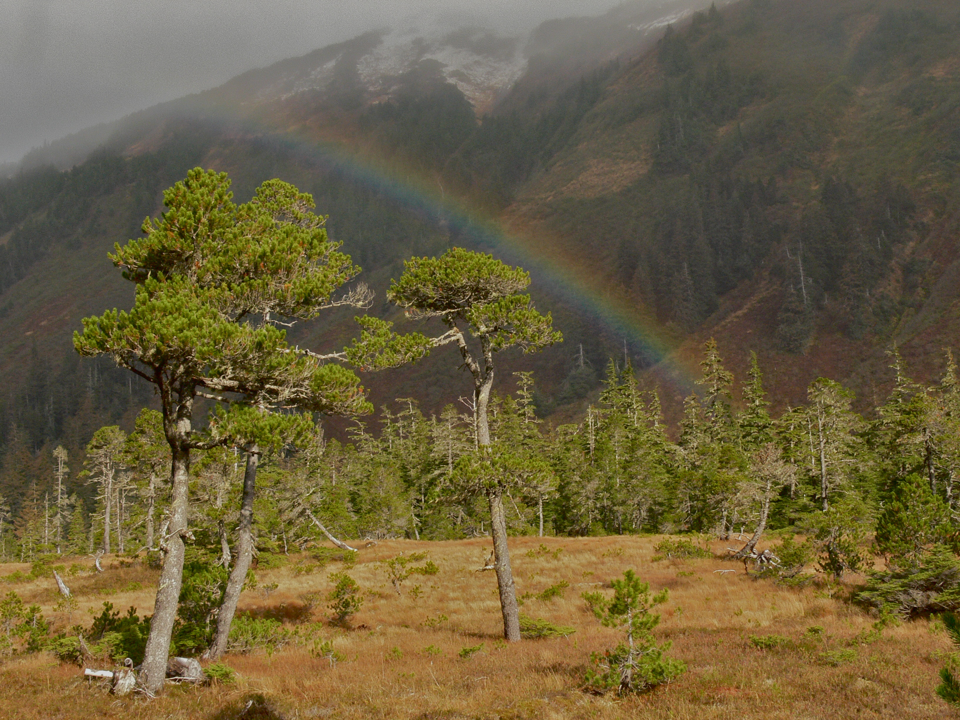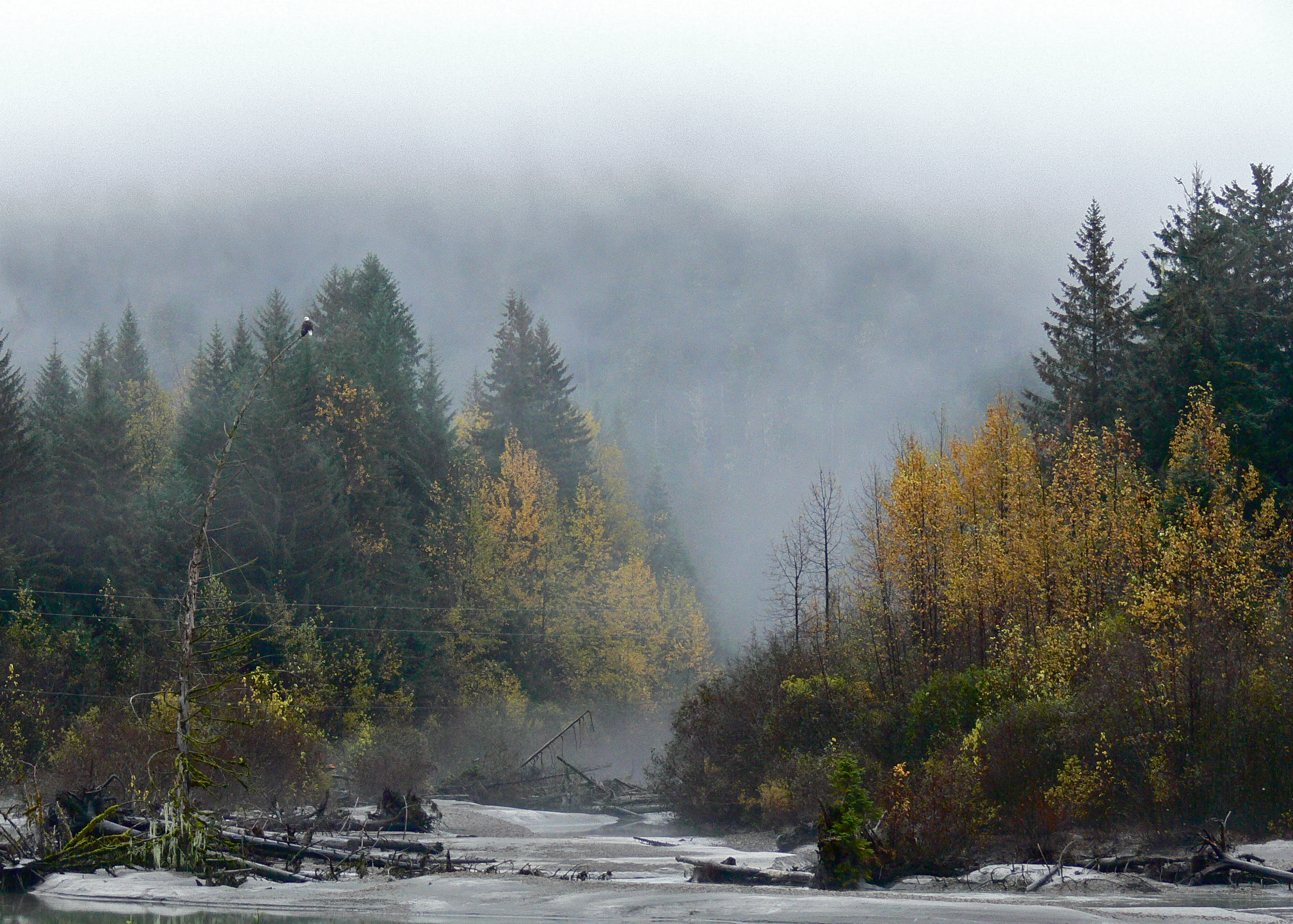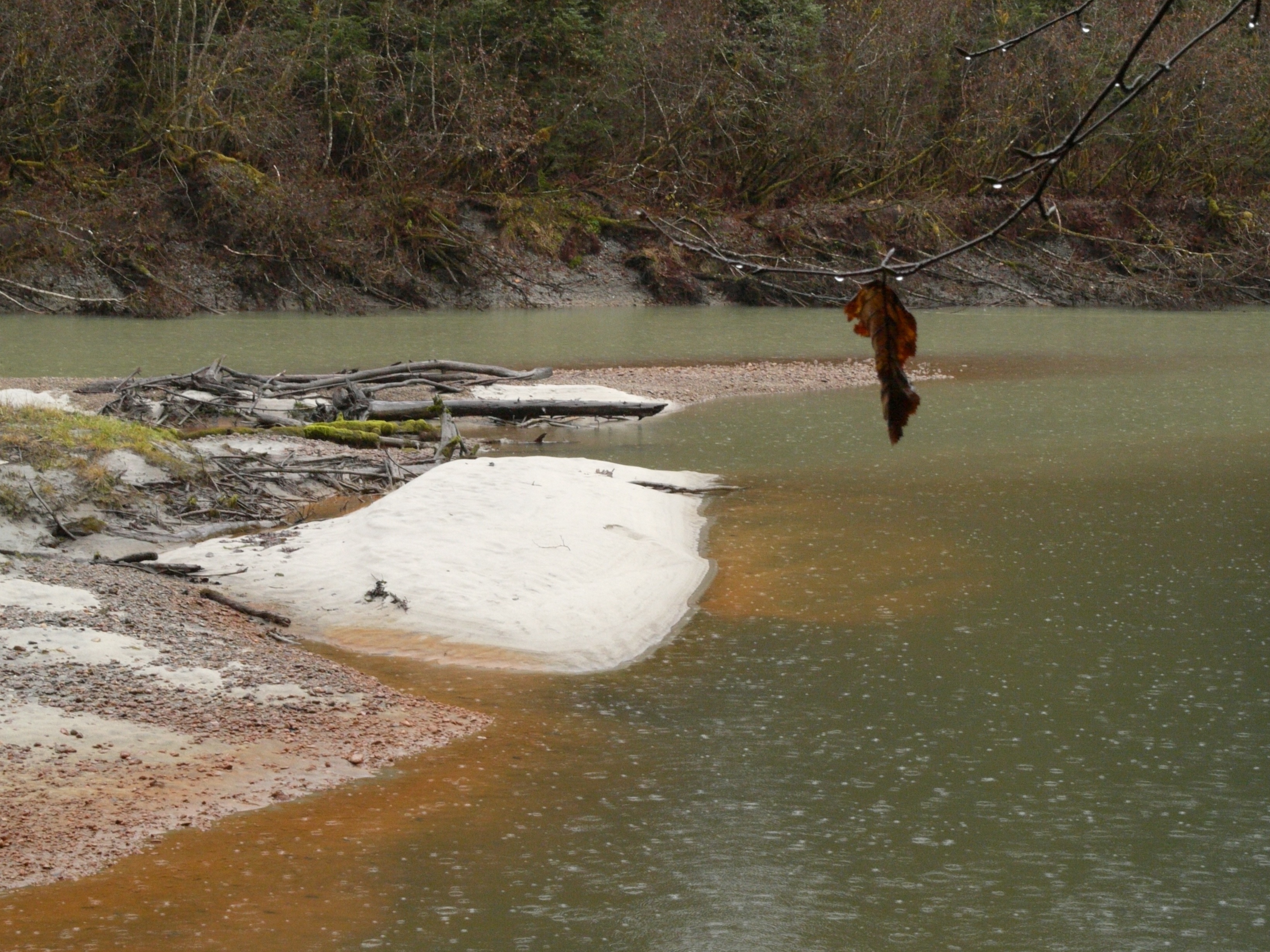 The soaking happened today, as Aki and wound our way through glacier moraine and troll woods to avoid an increasing number of beaver flooded trails. The dog showed little enthusiasm for the venture. I blamed the pounding rain and promised her that we will soon be protected from the worst of it by a thick forest canopy. She still hesitated then took up station at my heals as she does when smelling danger. A few minutes later she shot ahead. The rain continued so a strange smell or one given off by a bear must have caused her timid behavior.