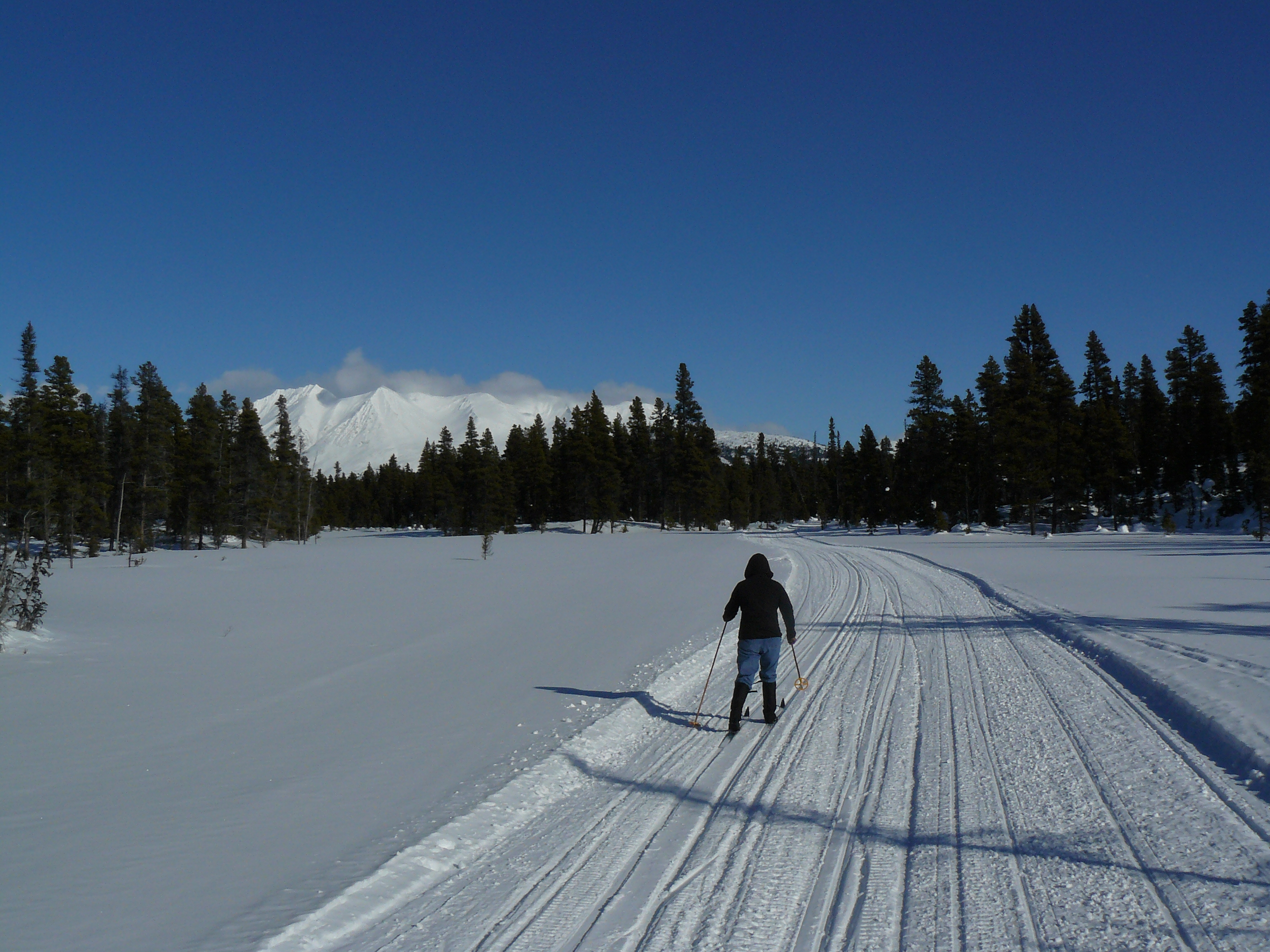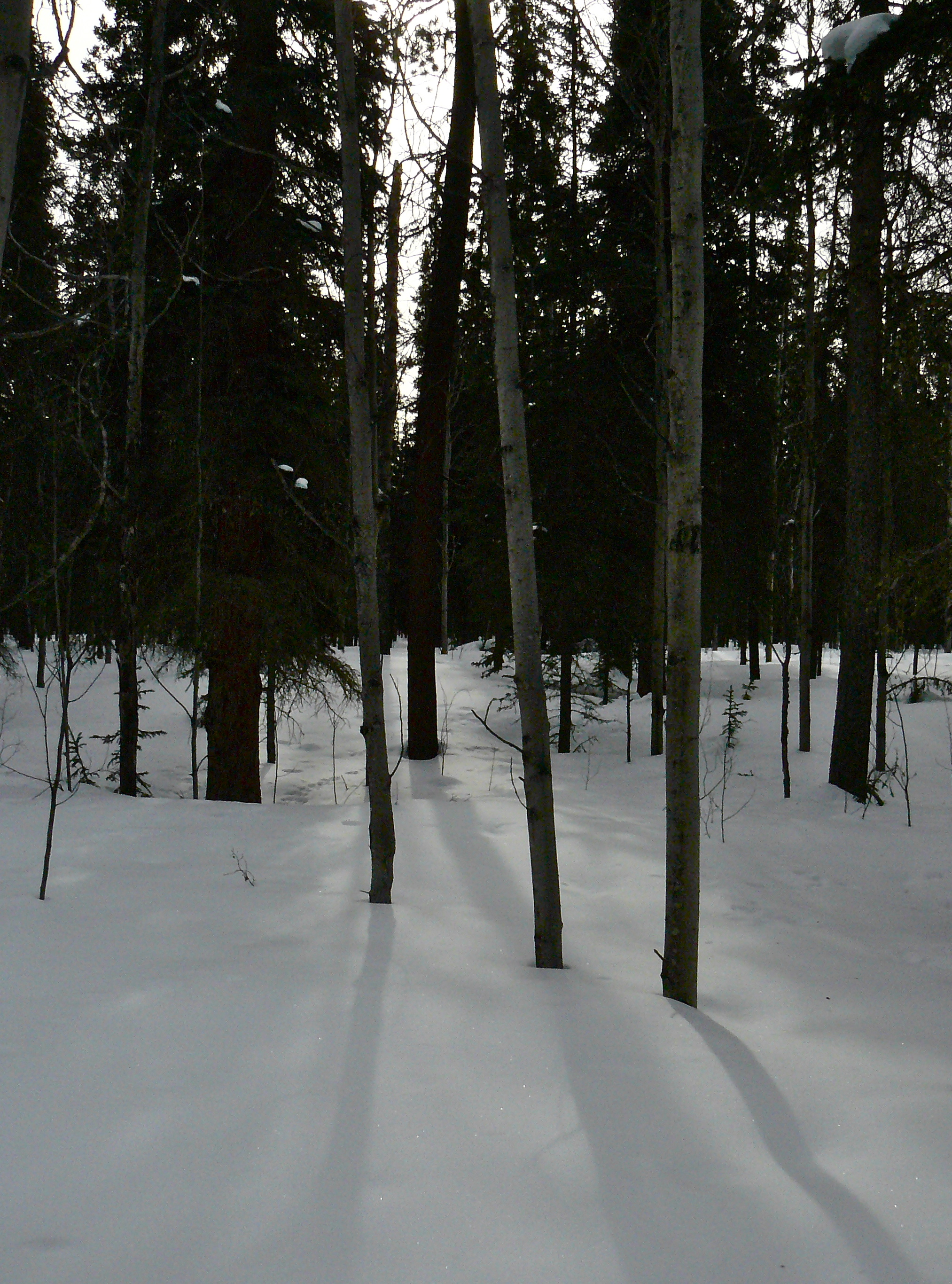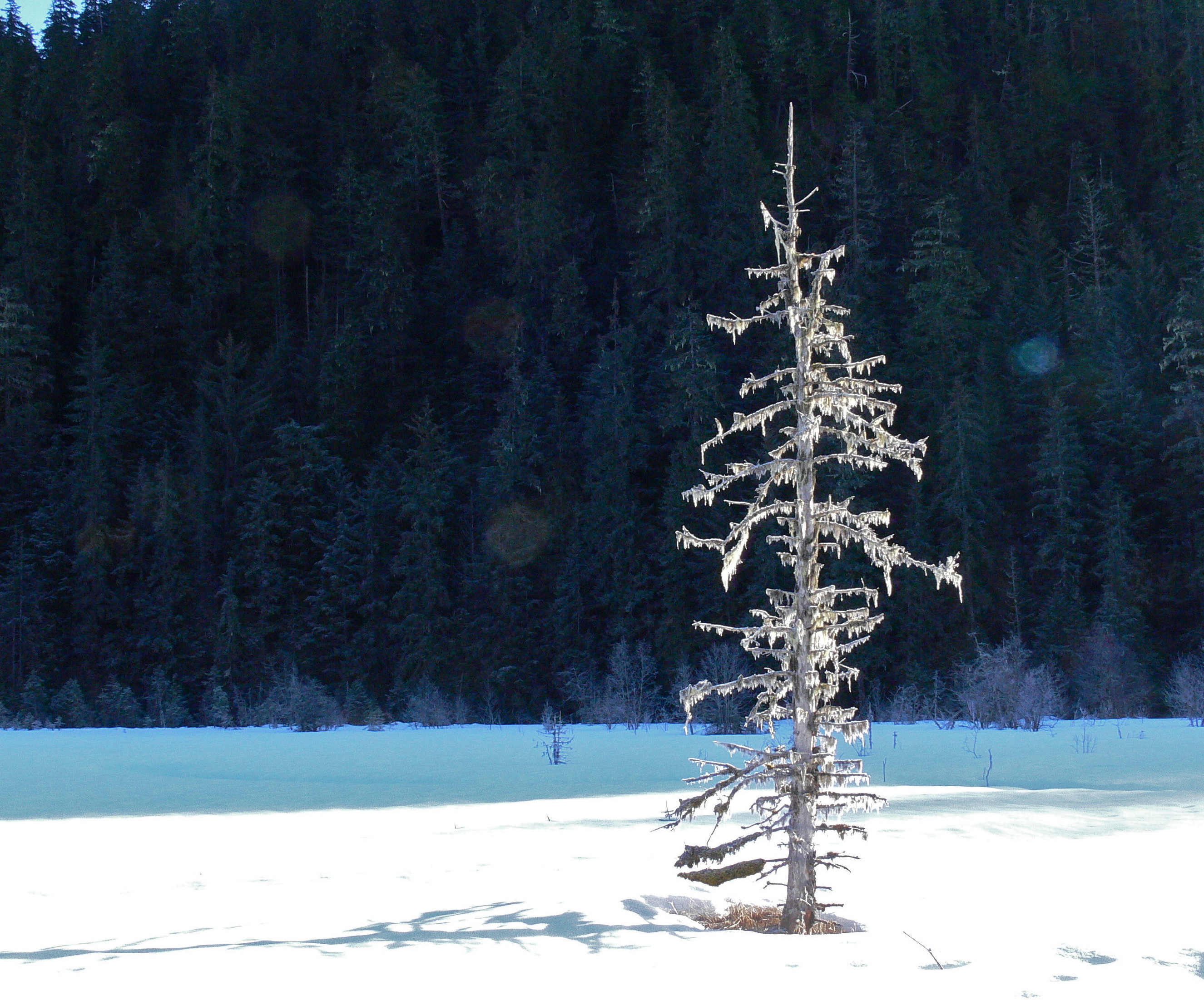 Aki would have loved this sun soaked meadow of snow. She might have shown concern or distain when I broke through a snow bridge and plunged into a foot deep stream. I am glad she missed that part. It is enough that I must ski all the way to the car with one very wet foot.