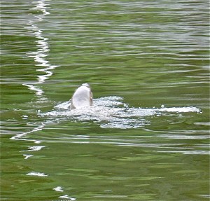 What is going on? If this were a seal I’d know the score. It would be driving the salmon to it’s hungry buddies at the other end of the lake. That would explain why some of the salmon are jumping high out of the water. But, as those that study these things in college will tell you, beavers eat wood bark, not fish. If this is true then the beaver is just being territorial and wants to drive these new neighbors out of town. Eat tail slap could be telling the salmon to find their own lake.