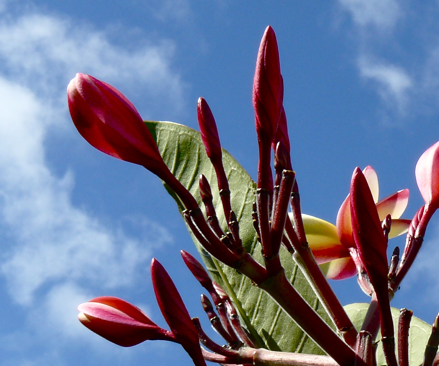 Friends warned us that temperatures inside the crater can reach 90 degrees but today’s trade winds moderate things for us. It carries the scent of flowers up through hibiscus grove (now full of plants setting seeds),and dying out as we reach the Americas cactus forest. There the golden light of late afternoon backlights the fibrous plants.