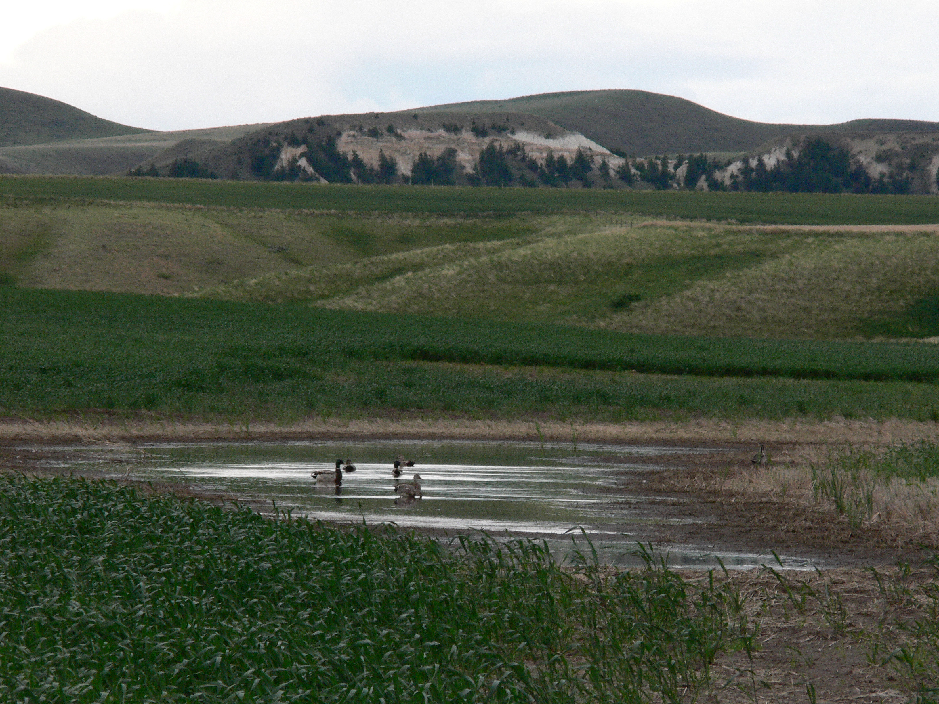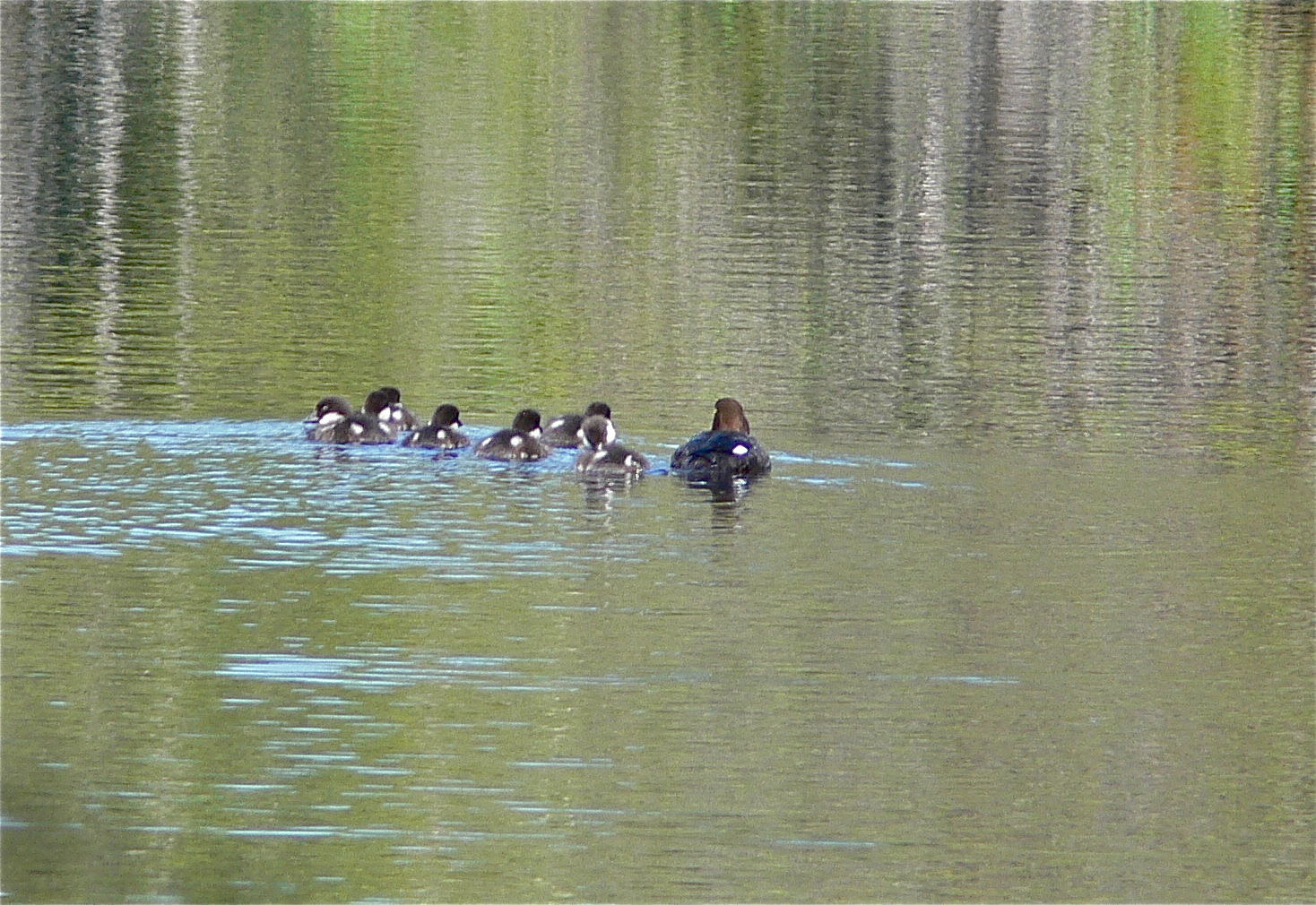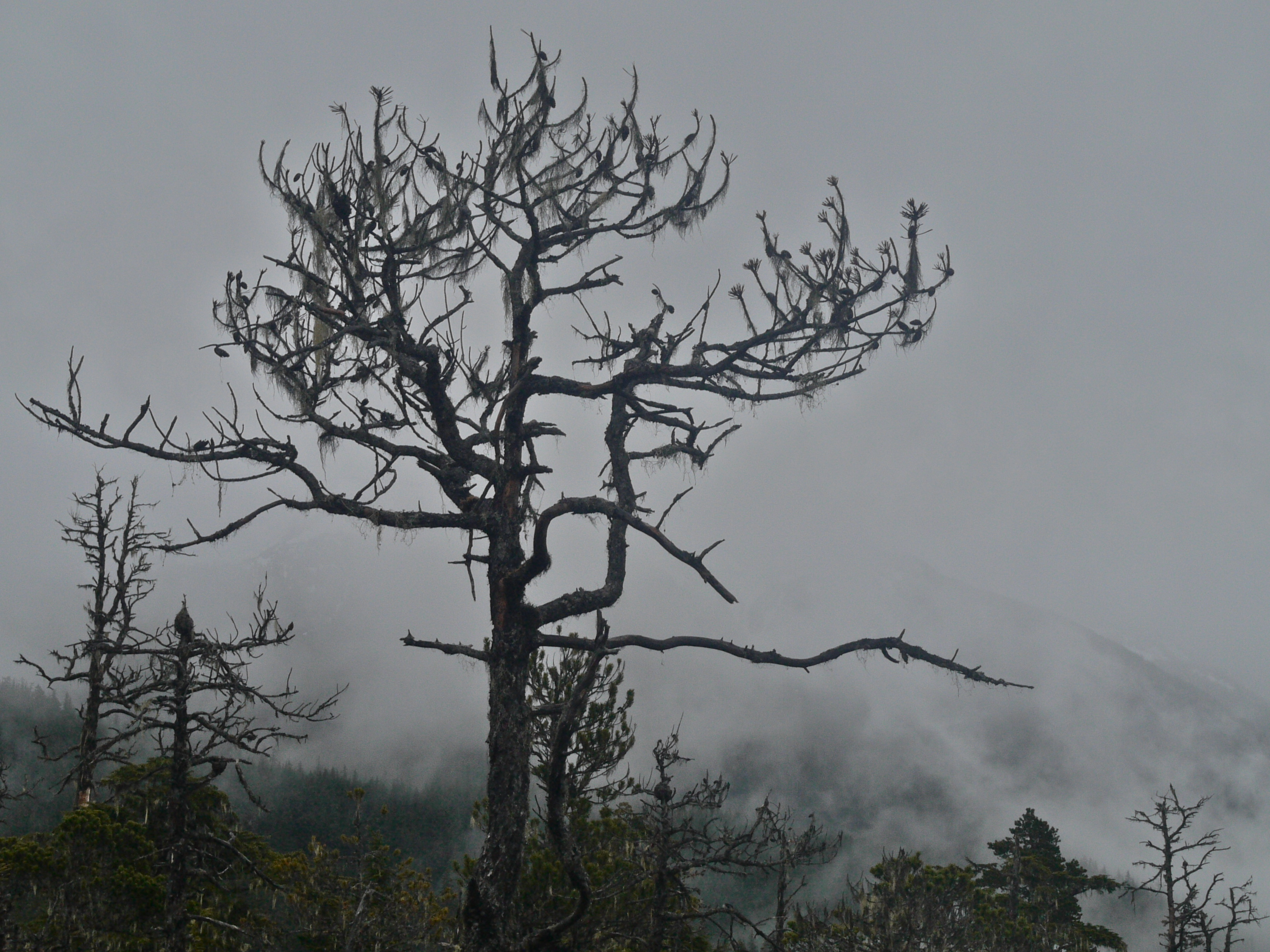 After the pond I return to my cataloging of the songs made by the mountain water courses. It’s a good day for it with heavy constant rainfall charging the rivulets and streams. I struggle to come up with new terms to replace those that have now become cliches. A small stream draining this field of magenta shooting stars makes a laughing sound moving along side the trail. Others gurgle or slosh or even roar when they pass through culverts under the trail. All the watercourses eventually join Fish Creek.