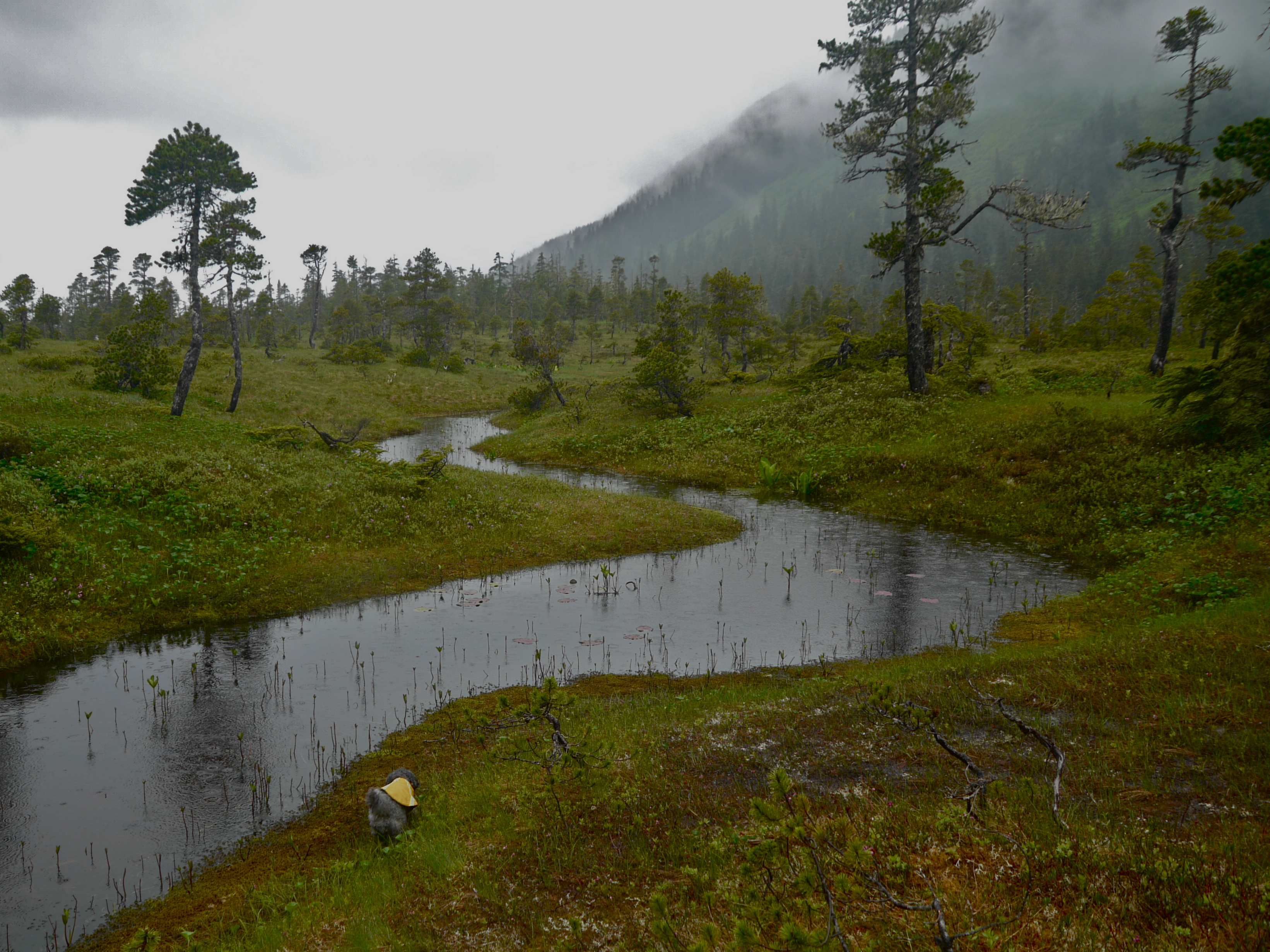 Today isn’t about the deer or hunting or even the amazing wildflowers in full bloom on this rain soaked mountain meadow. I’m here for the bugs and it’s Robert Armstrong’s fault. If he and Kathy Hocker and John Hudson hadn’t written an excellent book on the aquatic insects of Alaska, Aki and I wouldn’t be standing on the edge of this small pond looking for mosquito larva.