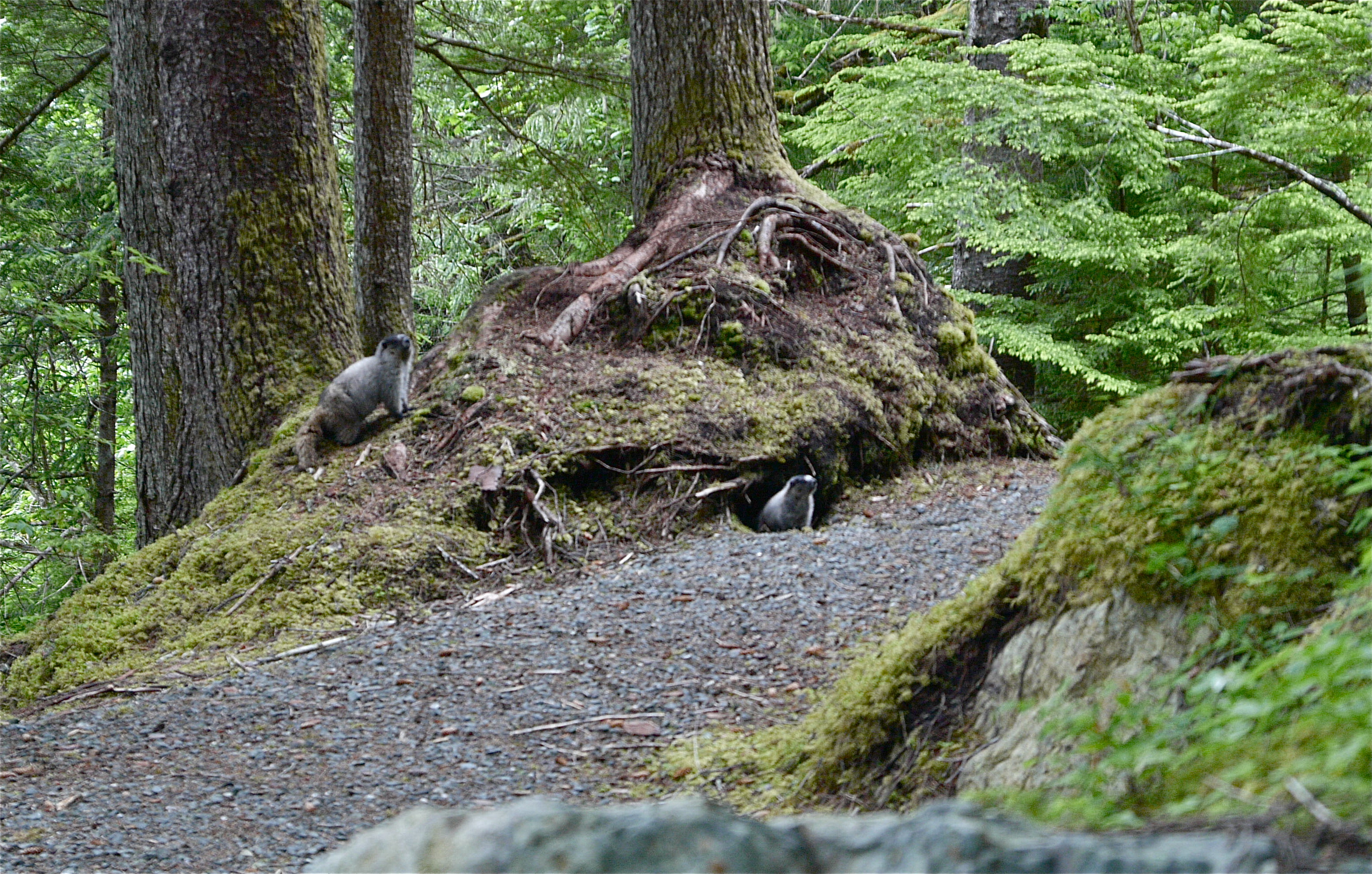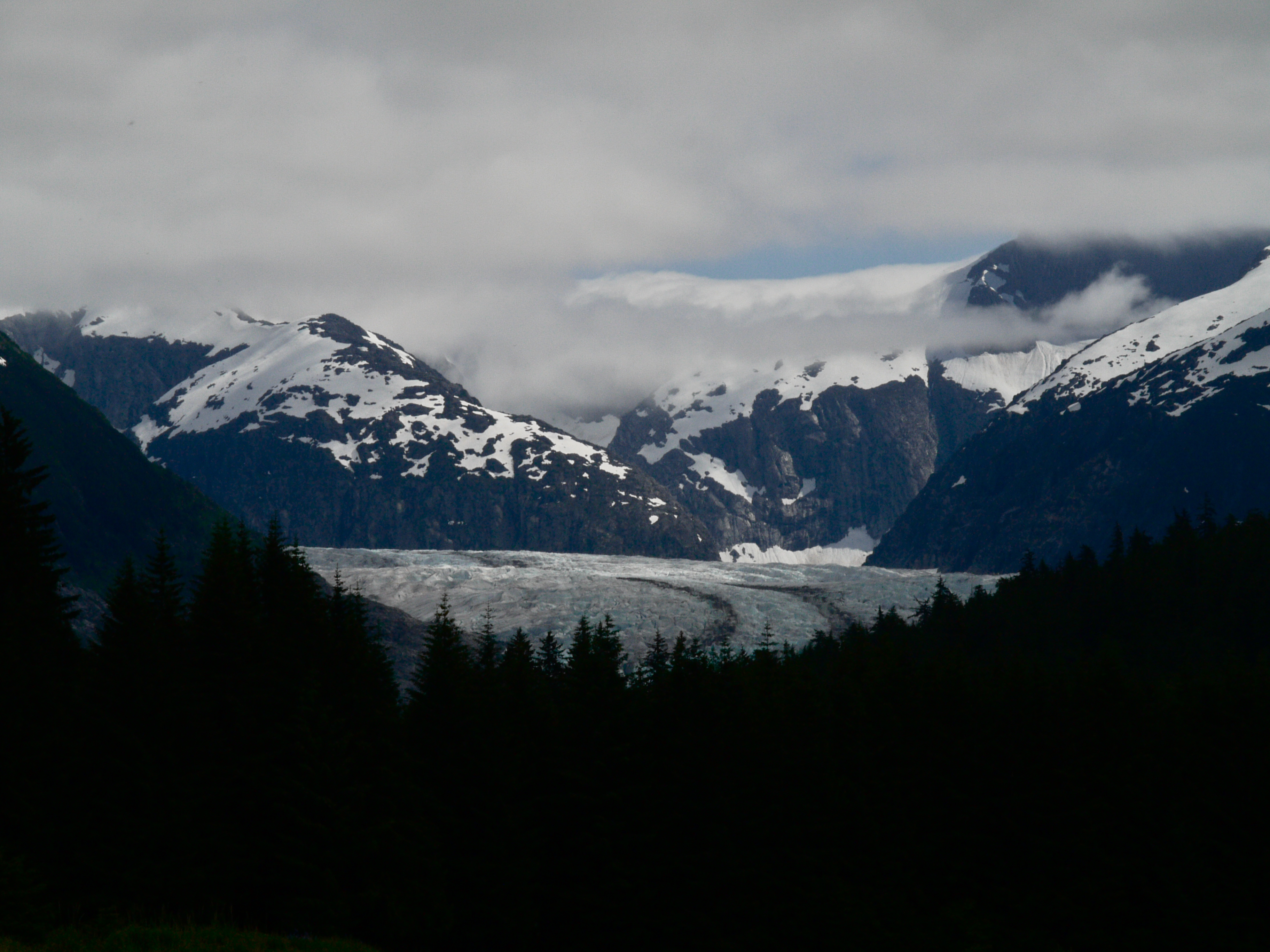 Aki, who has little patience for watercolor painting, is back in Juneau so I sit alone with a mentor. She has come to this milepost many times to paint a hanging glacier that spits two alpine shaped peaks. A bit older than me, this is may be her last chance to capture the contrast of high summer green hills with the blue and whites of the river of ice.