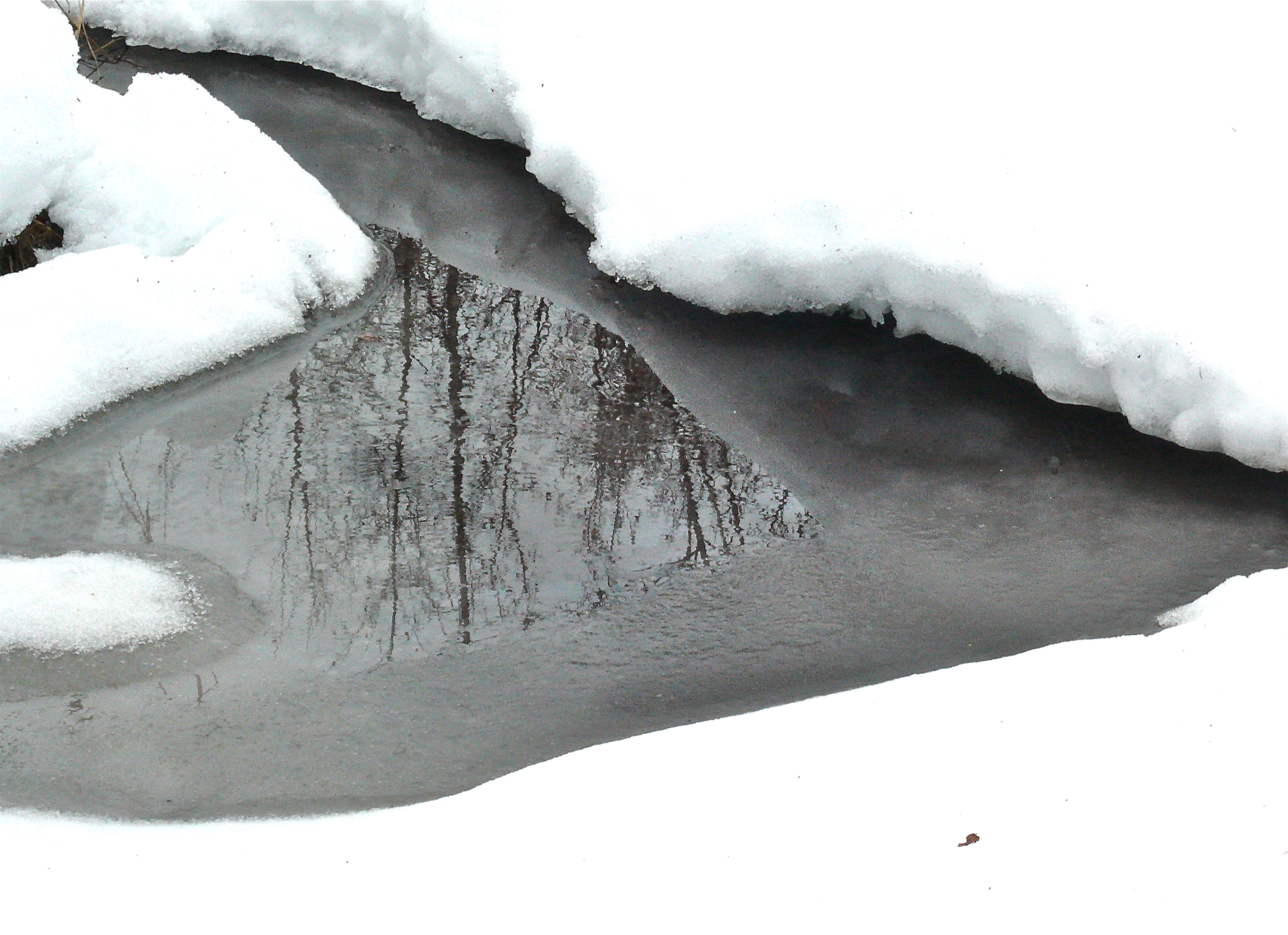 Ice and men have a complicated relationship. If young and passing in a group near an ice covered lake in spring or fall, they will urge the bravest or weakest willed to test its strength. Aki sniffs the tracks of one who ventured alone 50 meters on thin ice then returned to shore. I, young once, recreate the experience—fear making each step lighter than the last, friends still on safe ground urging speed, the delicious mix of trill and fear that fades to just fear at the ripping sound of a crack forming under foot, radiating out brothers in sisters in every direction you could take. Sometimes the crack opens to drop you into a lake or slough where the shock warms you enough to crawl onto firmer ice. Most times the ice supports your embarrassed, but dry retreat to shore.
