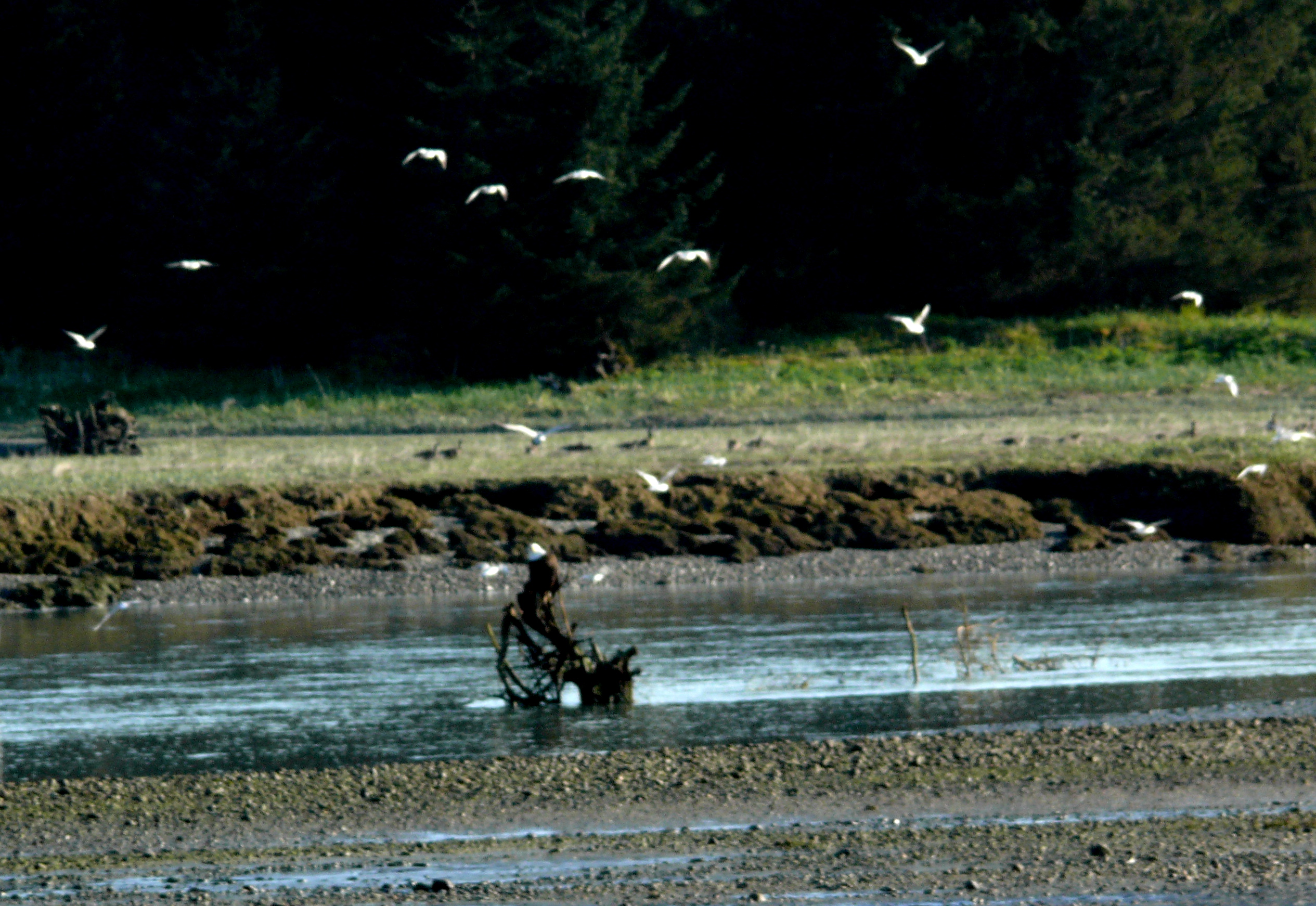 Last evening, Memorial Day in the USA, we found a patch of the flowers in full bloom in a beachside meadow. We had ridden there on bicycles, Aki riding in a handlebar basket. While we ate a late picnic dinner at meadow’s edge the air filled with geese and gulls disturbed by others there to enjoy the convergence of sun, warmth, and the holiday that marks the beginning of our summer. A bald eagle, securely placed mid-river on a protruding drift log root, appeared to ignore the cloud of gleaming white gulls and scattering Canada Geese.