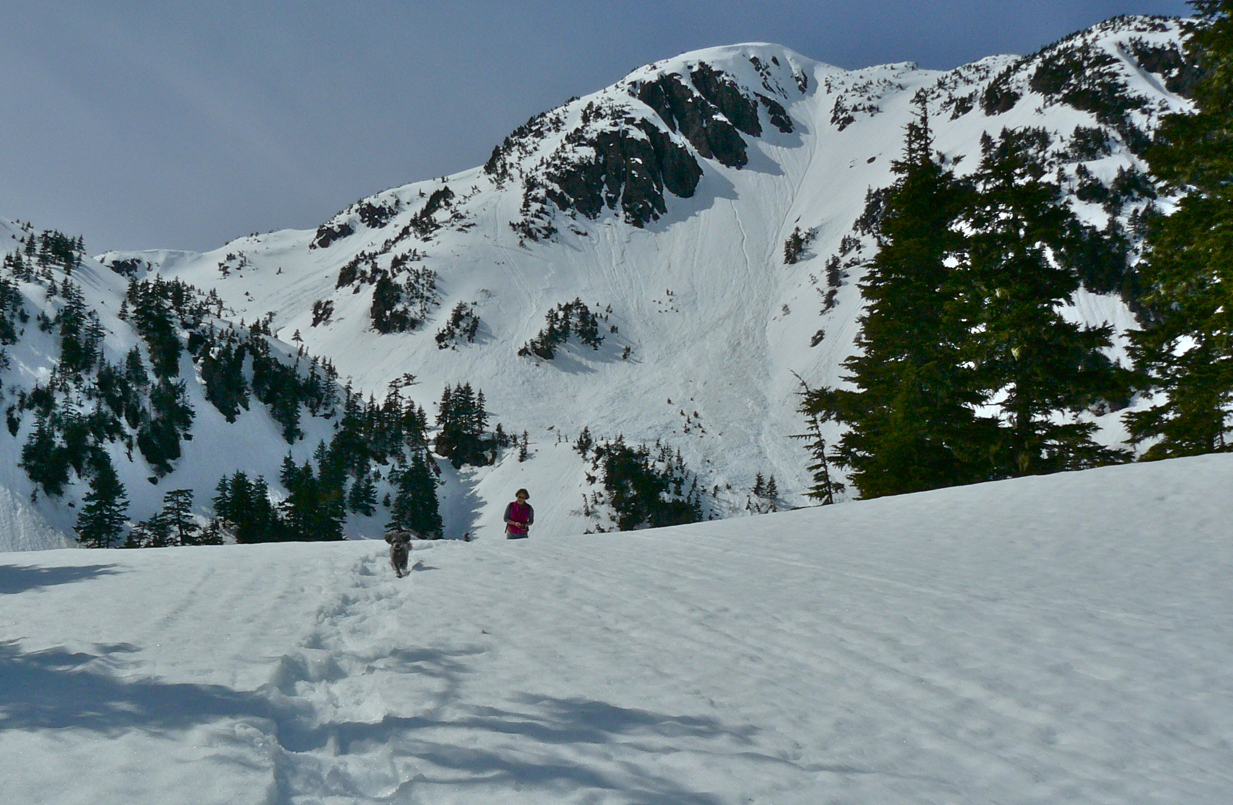Six days of dry, sunny days in the northern rainforest can throw off my internal clock. Experiencing it dog sitting at a friend’s beach house compounds the problem. Here at water’s edge, I feel my sleep patterns slipping as we stay up with the daylight of each lengthening day., seduced by how it deepens shadows on surrounding mountains while appearing to set alight their remaining snow. (My word selection is also affected).