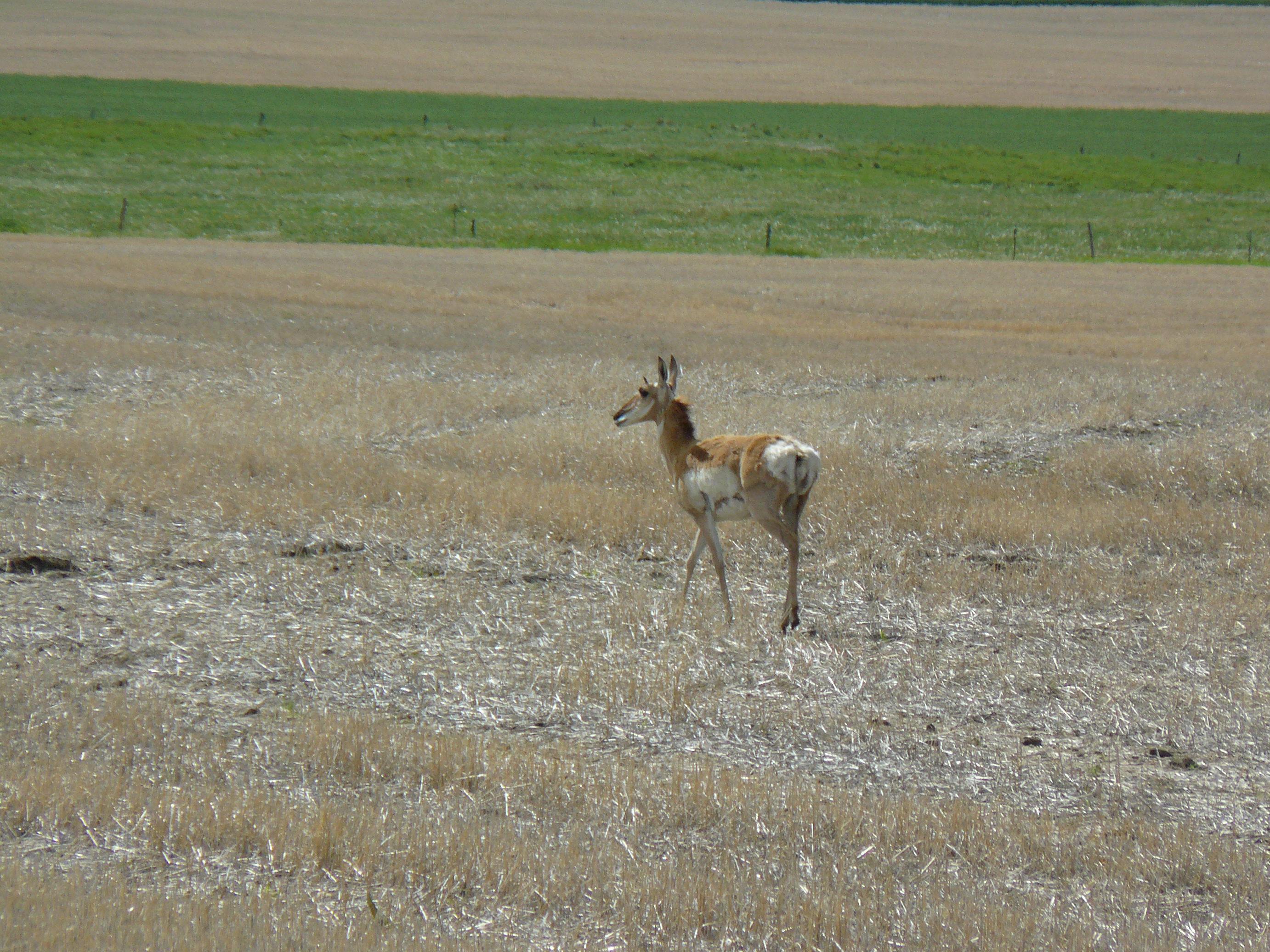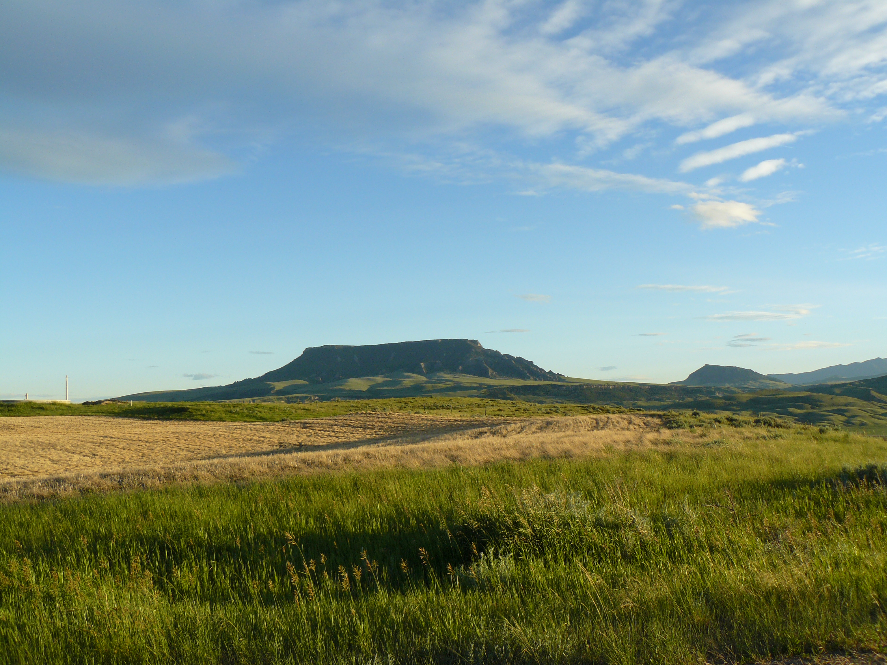 This Spring brought a blessing of rain, hard on the old house but a gift for the wheat, how green and tall in the fields surrounding the farm stead. A Meadow Lark on one of the pasture fence posts constantly repeats a lovely 6 note song, broken occasionally by the disharmony of a male pheasant, the more welcome music of curlews. I watch a small herd of Pronghorn Antelopes move cautiously from a stubble field toward a wheat fields across the road. Beyond the pronghorns, Square Butte rises above the fertile, flat bench, a giant’s cowboy hat with crown smashed down.