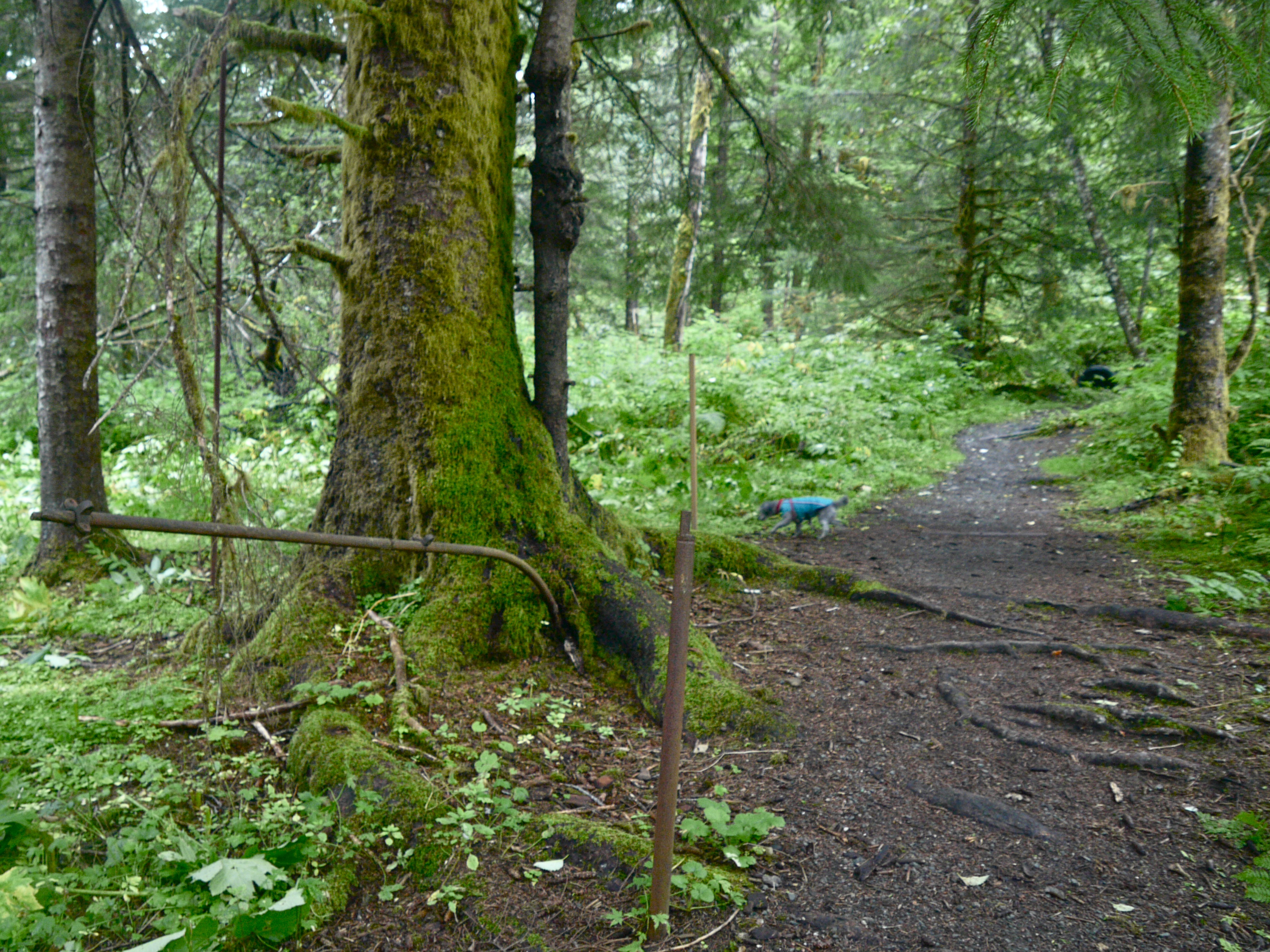 Facing a headwind and rain, we climb out of Haines Junction for 3.5 miles to where the road takes on a rolling personality, dropping only to rise a little higher as low clouds appear to chew on the surrounding mountain tops. This is our hometown weather so we push more on than 50 miles to the Million Dollar Falls Campground where, we were told earlier by another group of Juneau bikers, cold beer would be on offer. Those 18 were riding naked bikes behind support vehicles that haul their clothing, camping gear, and food. They delivered. The beer refreshed and the company’s kindness reaffirmed the power of our Emerald Lake blessing.