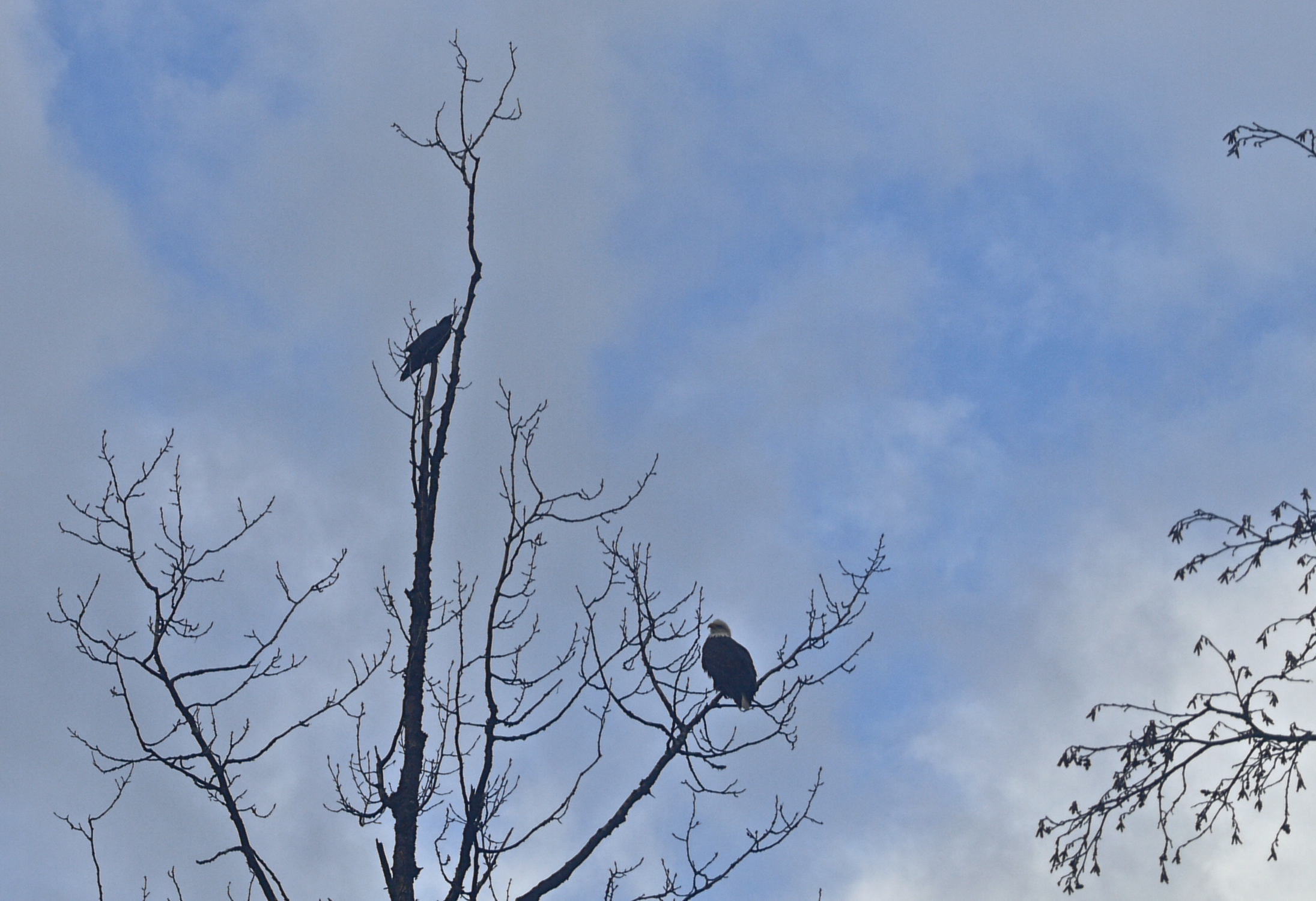 Two years ago I started this online journal with an entry about Fish Creek. This morning Aki and I returned to measure the progress of fall in this sheltered place. The salmon were gone, of course, bodies carried away by carrion eaters or washed away by the autumn floods. With nothing to attract them, we found no bears and only one bald eagle. We inadvertently flushed her when well past the places marked by the tracks of other hikers. It is so easy to find forest solitude on these rainy fall days.