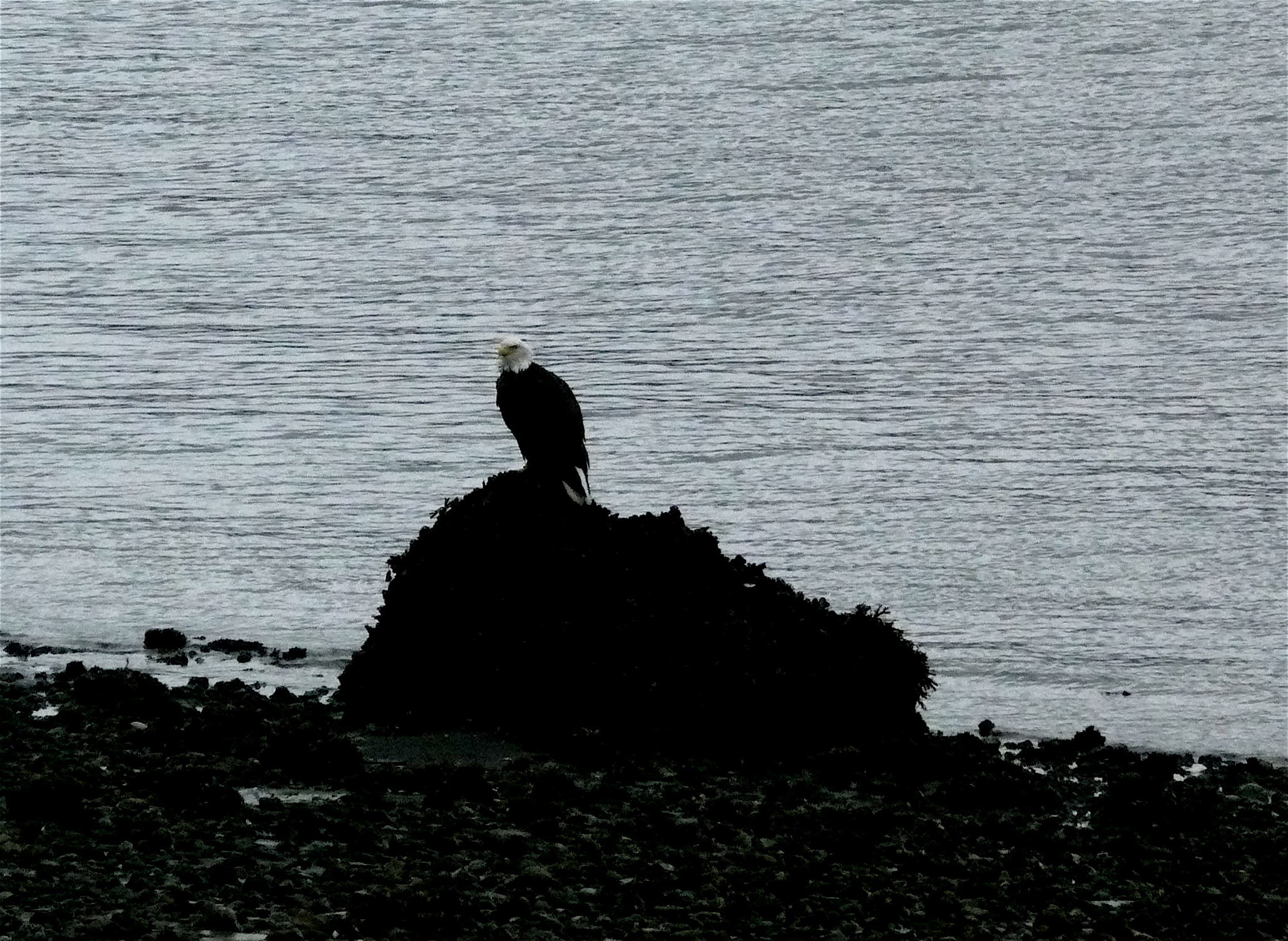 The lower portion of the trail leads past a school playground full of happy kids. Give a Juneau kid a rain coat and he will find the same joy in playing outside as one in Southern California. Aki ignores them in a search for dog sign. Many passed this way recently but we won’t see another dog on today’s walk.