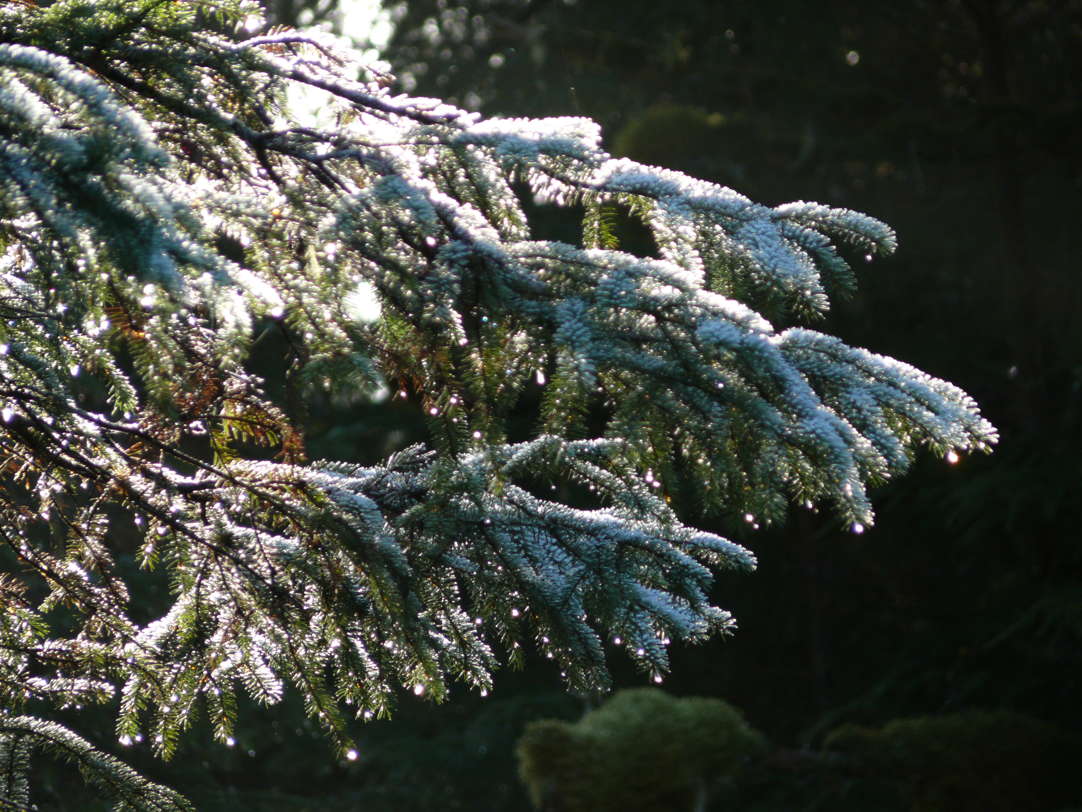 Things started to refreeze as we turned toward to trail head, as if washed over by another wave of cold. Perhaps, it was sun, not air temperature that made the surface moisture flow, then freeze on remanent leaves.