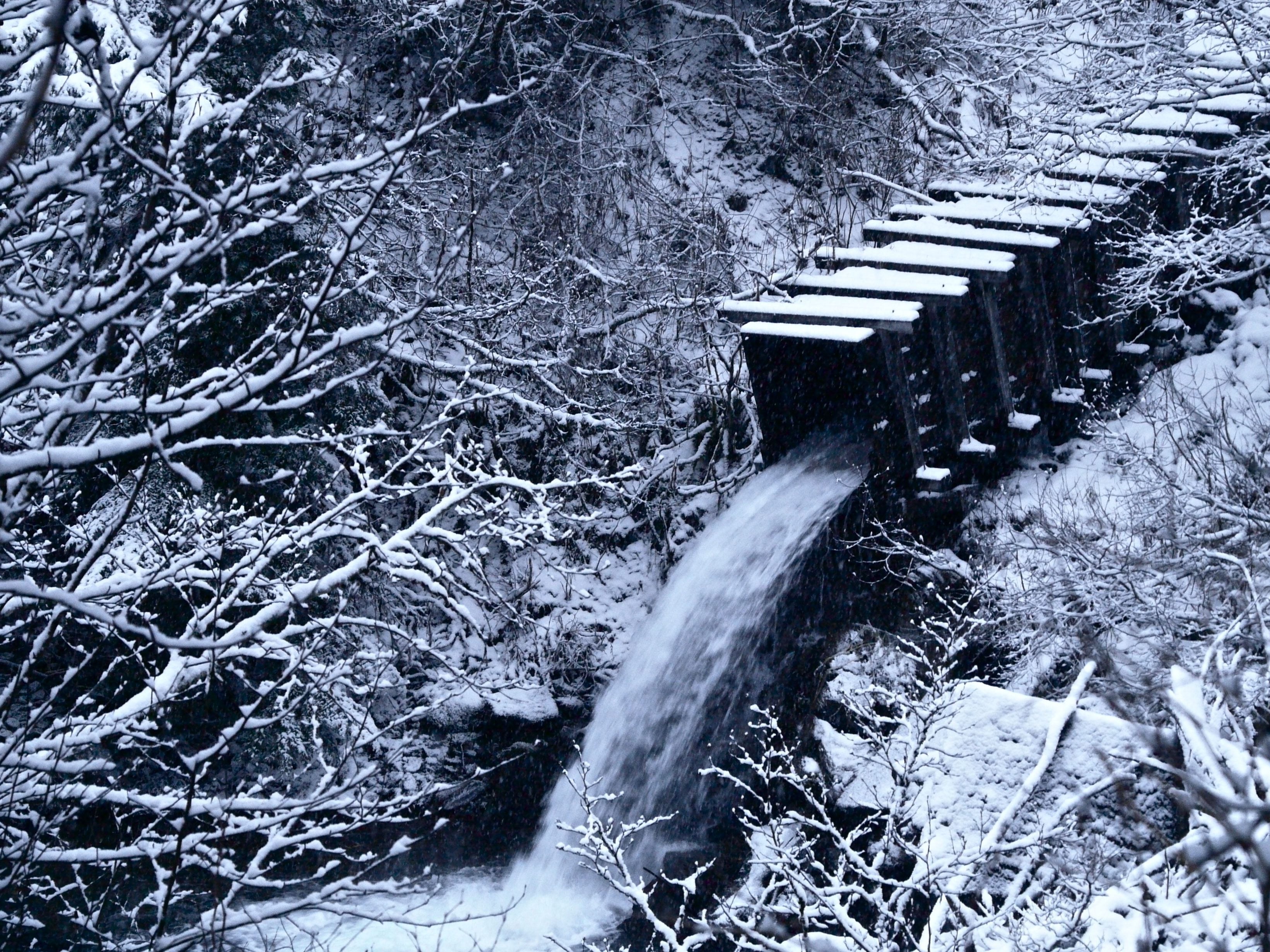 Sometimes, a winter storm ends in clear, cold but sunny air. Everything sparkles in light. More typical a gray warm front drives off winter. Last night, wind driven rain ended the first snow storm. The storm left behind more than a foot of snow in the woods. With the wind and rain still shrinking the snow pack on Chicken Ridge, the little dog and I headed to the shelter of the old growth.