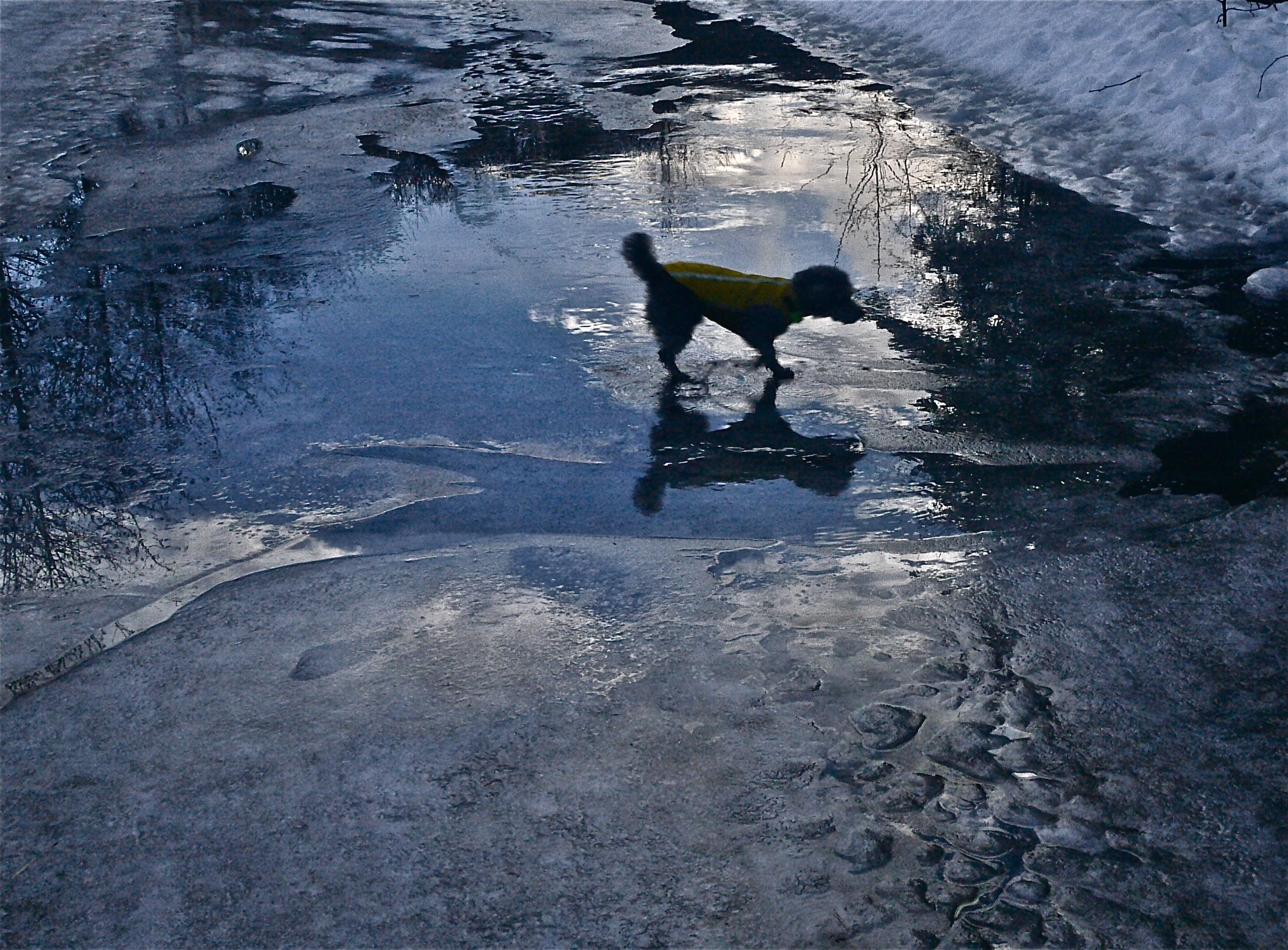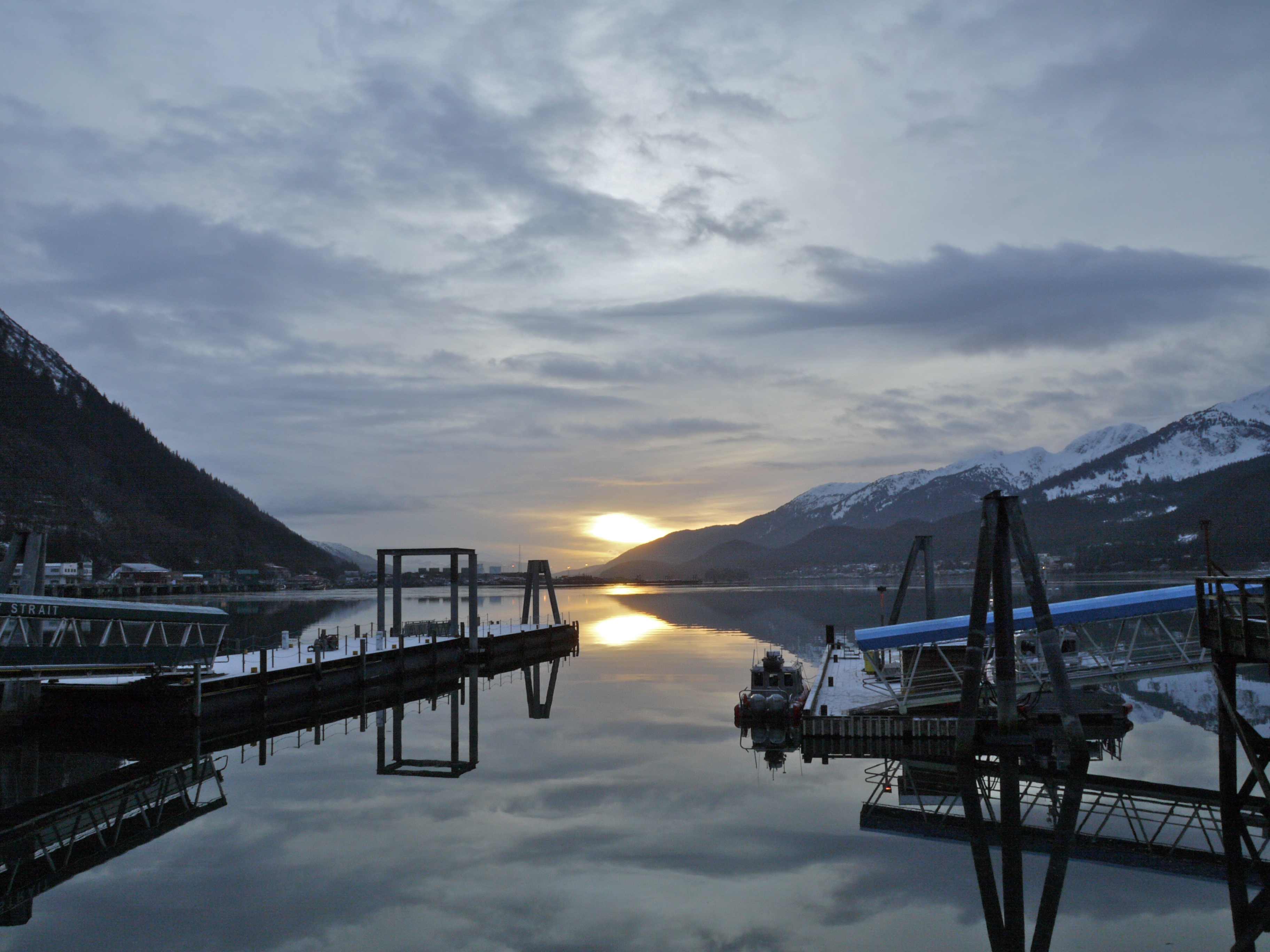 The town was built by people following the money. Our drinking water flows through old mine tunnels. Miners built our house and most of the others in Downtown. A huge fish cold storage plant once dominated South Franklin Street, where fisherman sold their halibut, black cod and salmon. Now the street businesses only process the money of cruise ship passengers. Aki and I avoid South Franklin when the Cruise Ships are tied up along its docks, like we would avoid Gasteneau Street if the ruined gold stamp mills still pounded ore. Now in winter, with the mines closed and the ships serving warm weather towns, we can enjoy the solitude of deep woods on our city’s streets until the tourists arrive in May.