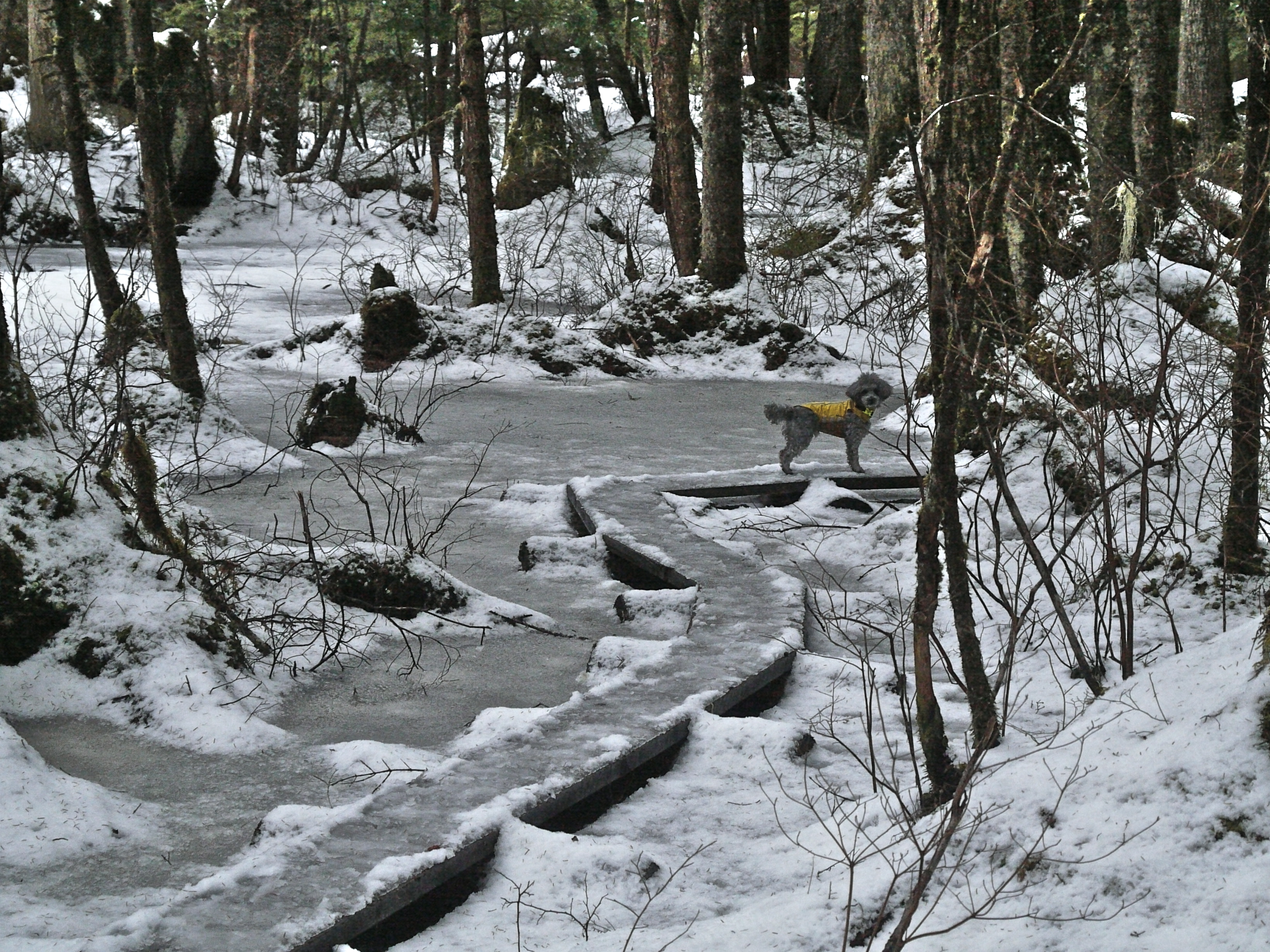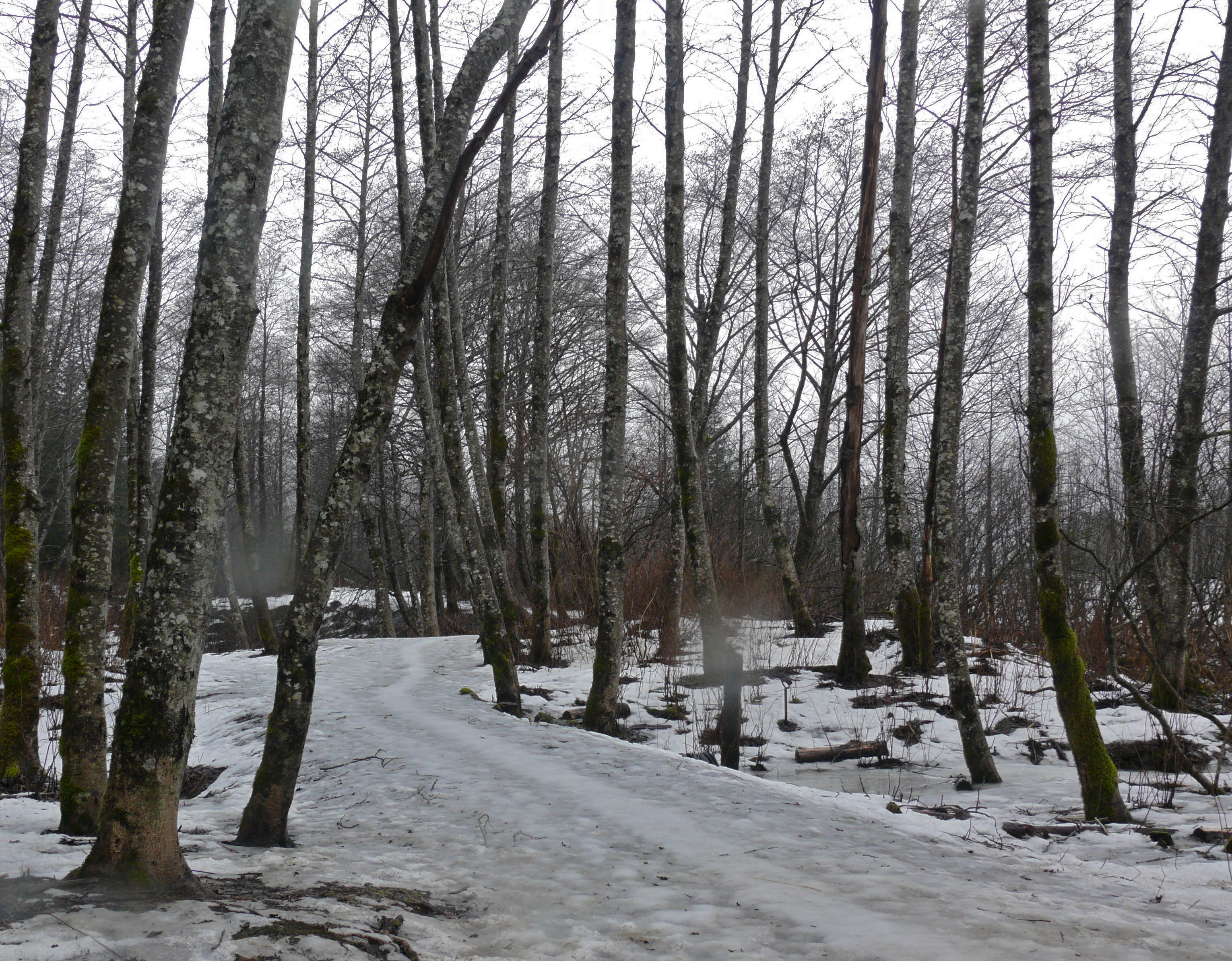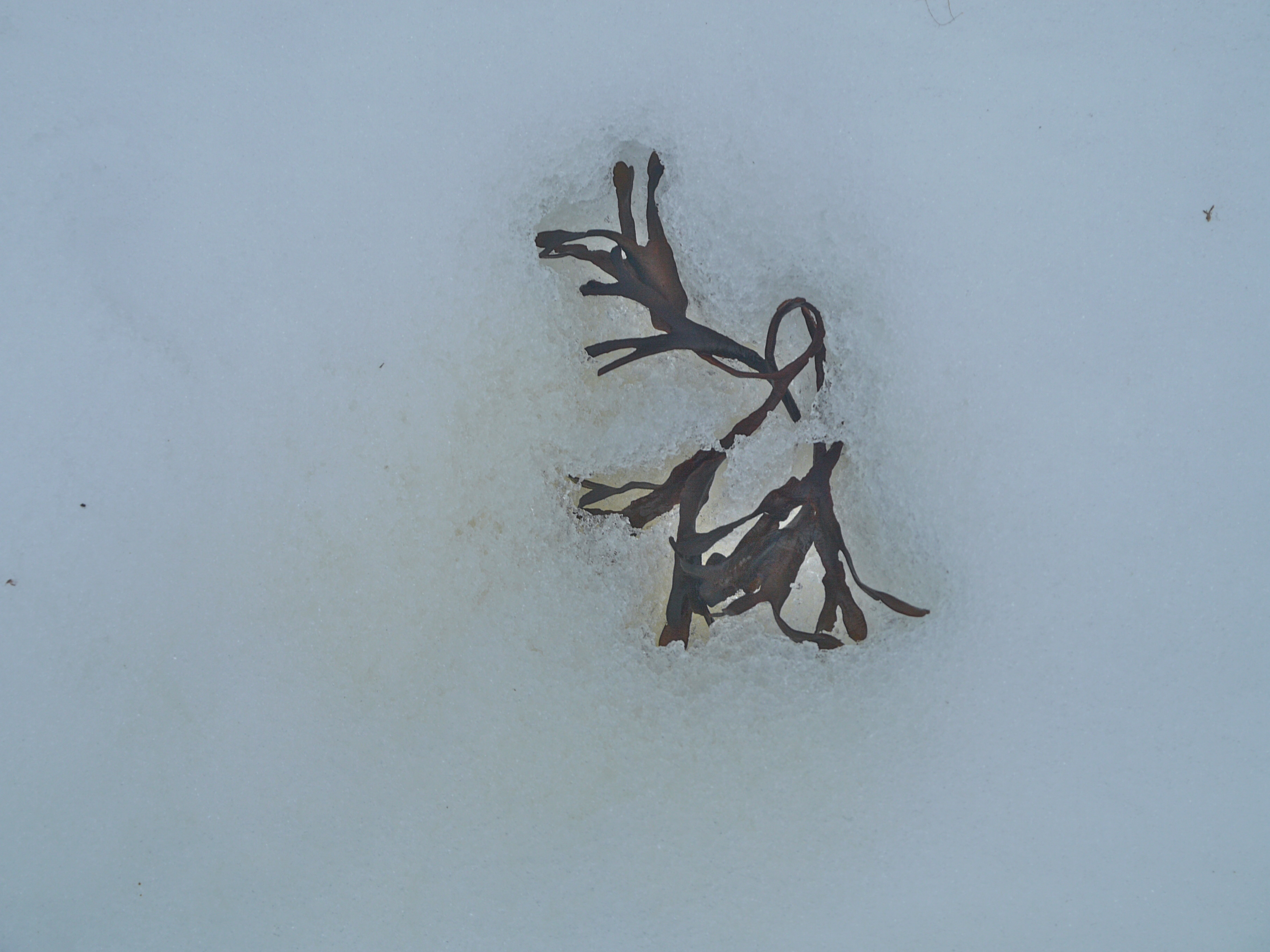 Like a detective trying to discover clues in an ancient crime scene, I try to puzzle out what made these faint tracks on the meadow snow. They wander across the snowy field like furrows set by an inattentive farmer. Crossing them are recognizable snow machine tracks left by someone who enjoyed banking his machine on steep creek banks, shooting over the shoulder of the big beaver house, and weaving through the bordering forest. Some, maybe the rabbits and deer that watched the show, would find the snow machine driver guilty of crimes. I don’t judge, just hope that the relatively short reach of the meadow will discourage a return.