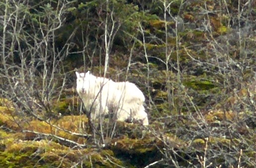 Last night one goat flew from a rocky ledge. It appeared to leap, rather than fall, and sailed above a hundred foot drop at an angle that carried it behind a rock outcrop. This morning, I wonder if it’s broken body lies on top of avalanche scree. If the goat is dead, ravens and eagles would be circling above it. I see nothing but a goat, hopefully last night’s acrobat, feeding a quarter a mile up slope.