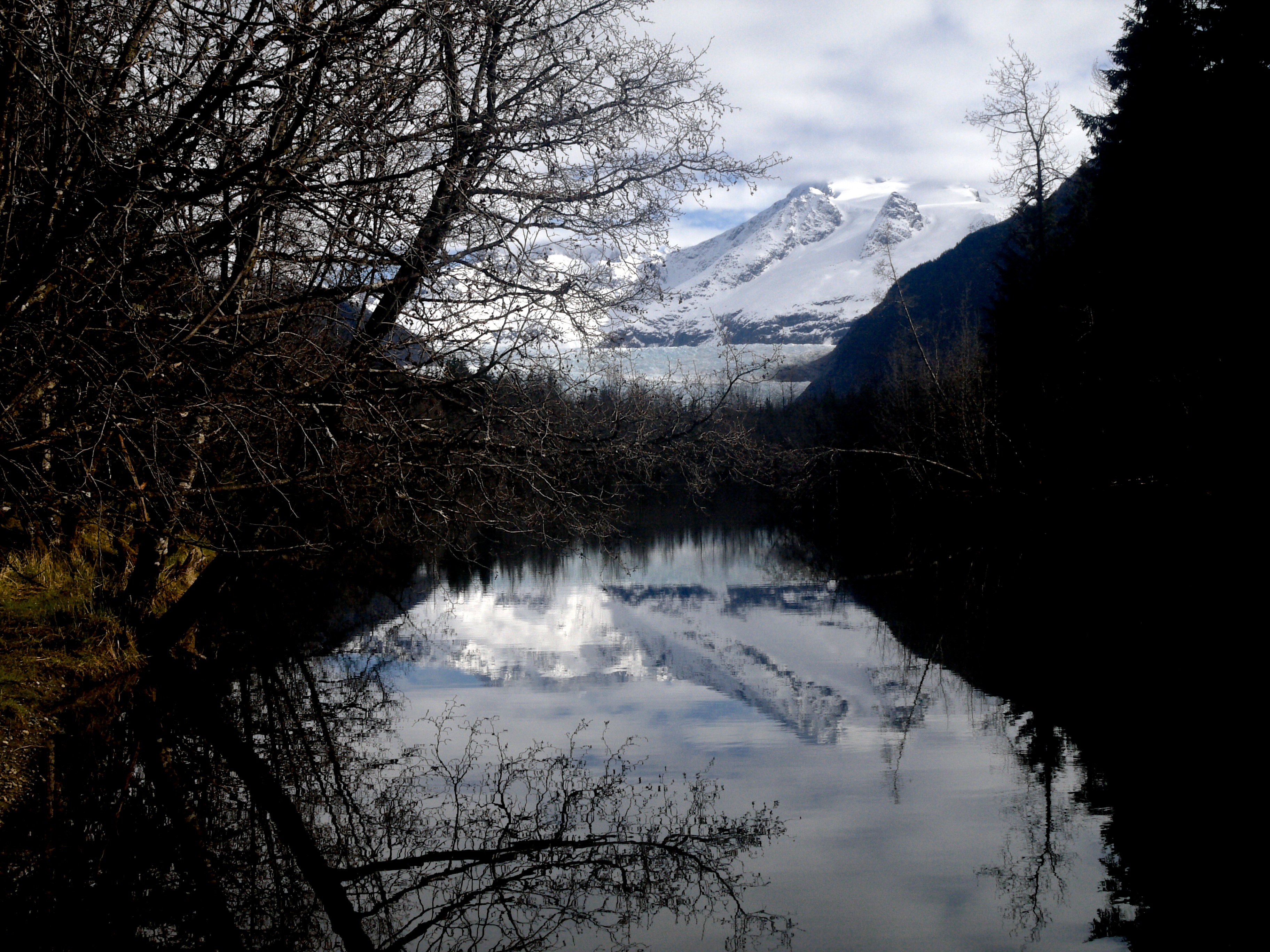 Does Aki prefer the one note song of a varied thrush or robin’s happy refrain? She wouldn’t tell me even if I asked, which is impossible at the moment because she is off investigating a patch of grass 50 meters away. We are moving through dense alder brush on the way to the Mendenhall River. The woods hide what sounds like hundreds of birds, each singing a carnal song of spring. Aki, neutered long ago, ignores the din.