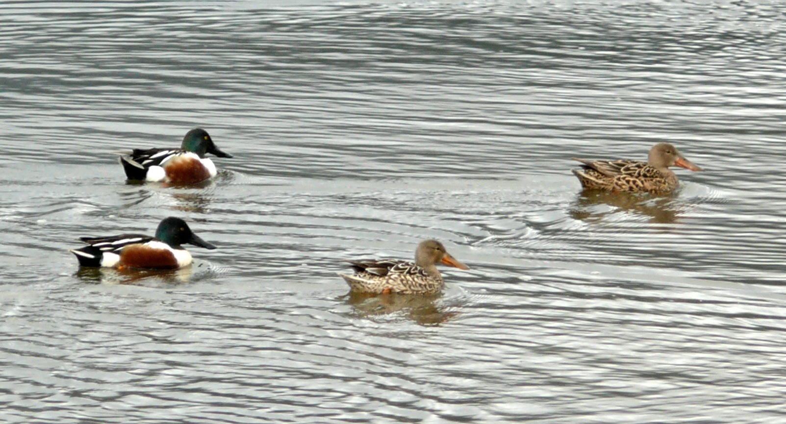 I have forgotten how new yellow-green cottonwood and alder leaves bring back to the Sheep Creek Delta some fall glory. Turning away from the show, Aki and I watch some migrants working in salt water near the beach. The workers, a small raft of green-headed northern shovelers move with a casualness that none of the local birds dare to show. This is a rest and refuel spot for the visitors who must soon return to their migration to central Alaska.