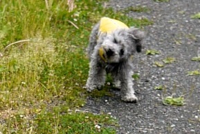 Every since we started down the seldom used trail, Aki is the impatient one. She dashes away and returns as I take a picture of dandelion down clinging to a columbine flower. I get the hint and pick up the pace. She pulls me to the front door when we reach the house rather than trot around the back where we hang her harness and store the doggie treats. I solve the mystery when I walk to the back door and see Aki’s other human exiting with a breakfast tray that carries tea and slices of home baked bread topped with cheese and sections of red peppers. Aki is all about the cheese and follows my partner out to the temporary teahouse we erect each summer in the side yard. Perhaps the little dog sensed the coming weather change and knew her other human would want to enjoy one last morning of sunshine drinking tea and eating cheese smörgás. On these occasions, she has come to expect a sharing out of cheese.