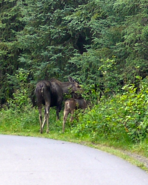 In Anchorage, hundreds of miles away from Aki, I wonder what she would do on this willow-lined trail. I’ve passed a series of dog walkers. Some were tethered to their pets with extendable leashes. Others, like a brace of stubby-legged corgis, are free to bark and chase after my bicycle. Minutes after passing the little Welsh dogs, I slammed on the brakes when an adult moose walks onto the bike path and stands astride it like a crossing guard. Seconds later, her calf crosses the path. Mom gives me a long stare and she joins her child in a meal of young willows. After they have mowed their way into the woods, I continue on my way without having to dodge mom’s slashing hooves. I hope the corgis have the same luck.