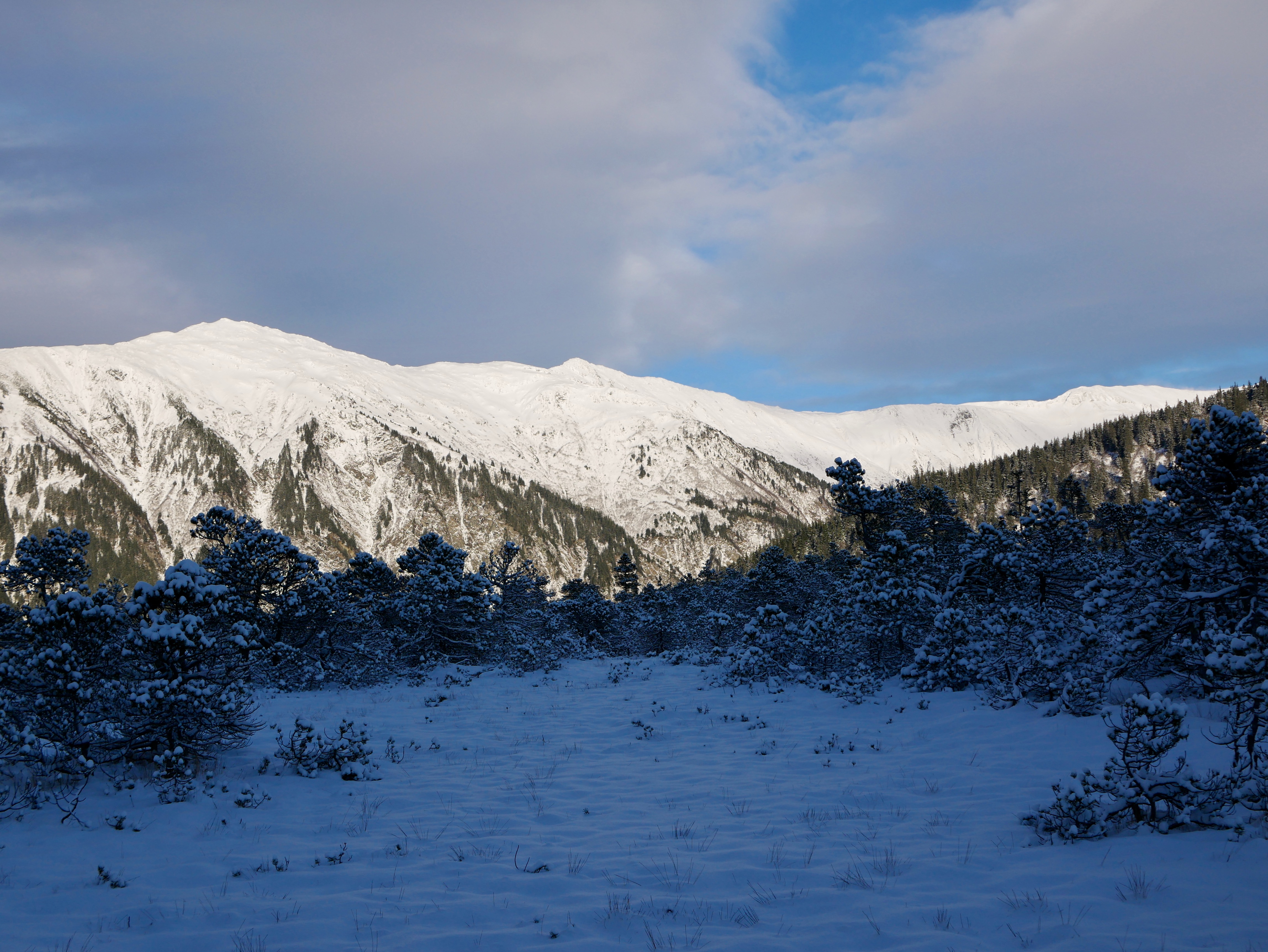 It’s a day to enjoy the mountain meadow’s beauty, not to predict a predator’s behavior. Because it is in the shadow of the Douglas Island Ridge, the meadow will spend the day in the shade. But the sun shining off Mt. Juneau and the other peaks that line Gastineau Channel almost blinds. The sun rich mountains are rich in beauty when seen when standing here in the half-light of dusk.