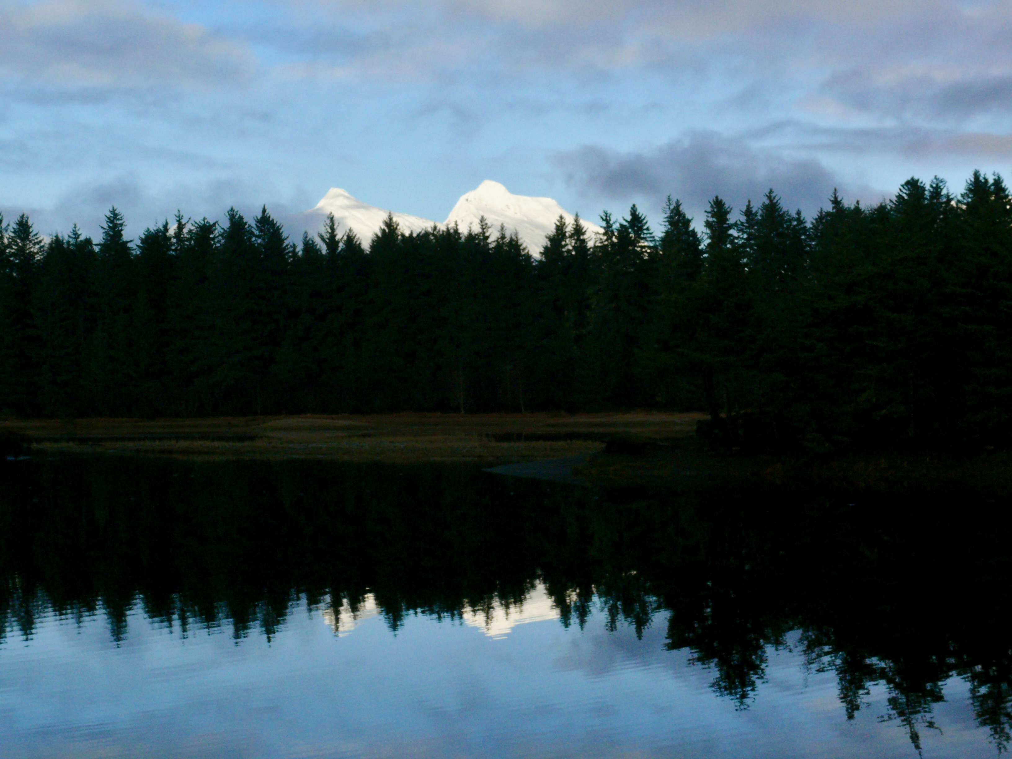 We will see eagles and a handful of ducks. But the sunlit mountains will grab my attention. At one o’clock in the afternoon, they will be made impossibly white by end-of-day sunlight. Their silhouettes will cut a rugged line in the azure sky. Calm water at their base will double the scene.