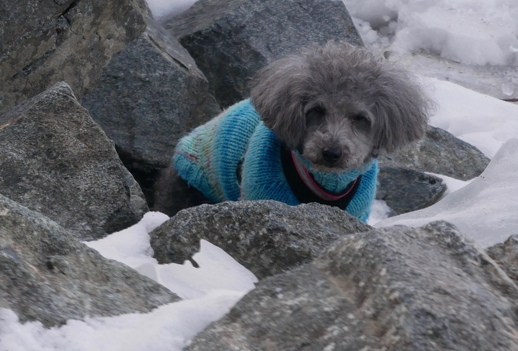 The little dog waits for me at stream crossings where a thin sheet of water covers the ice. She knows not to let her feet get wet in freezing weather. I lift her with one hand and ferry her to the other side of each creek. She trots ahead scouting out possible dangers. She wants me forewarned.