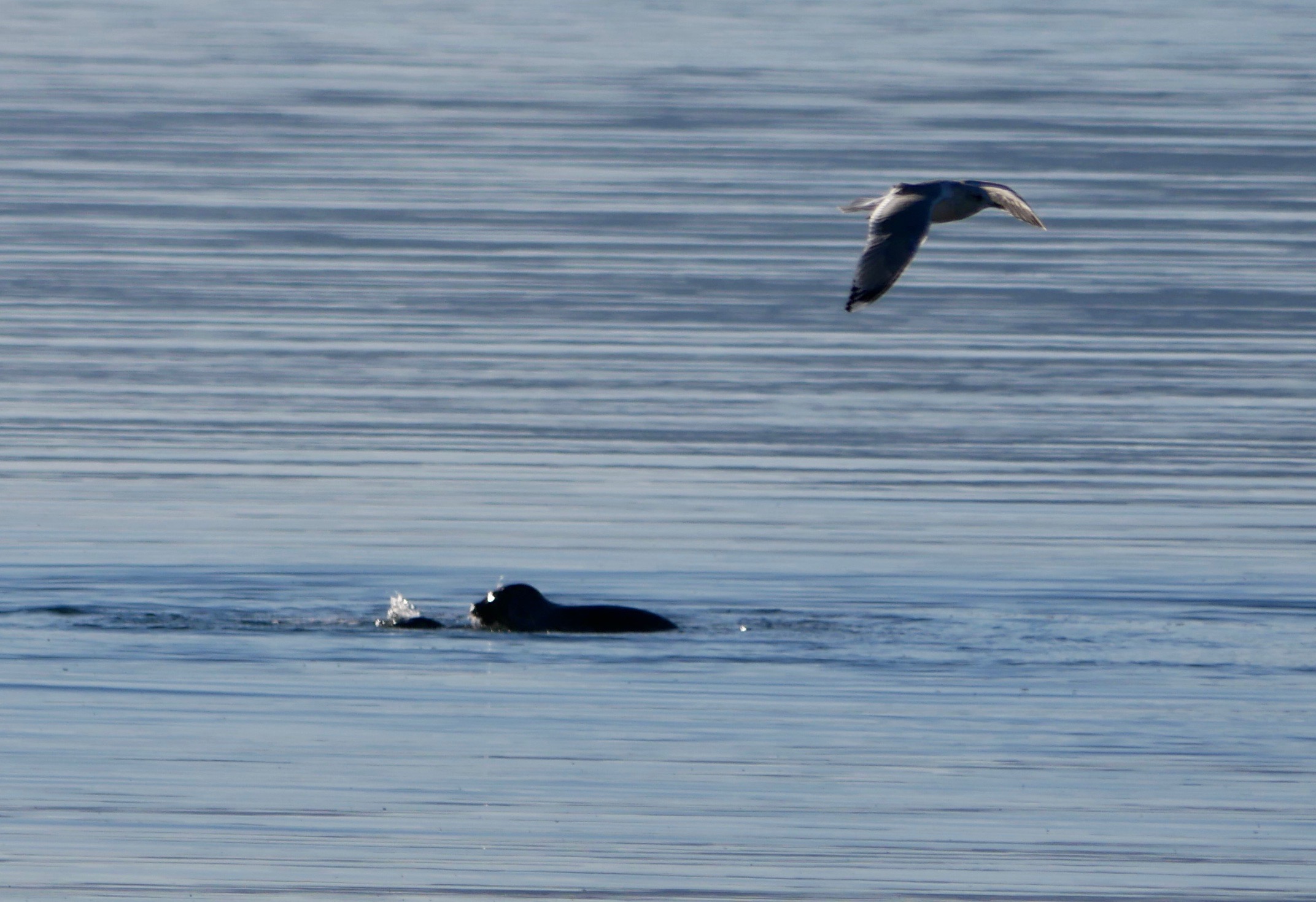 A cloud of fussing gulls flies over two seals that splash and swim around each other. One of the seals appears to climb up on the back of the other. Is this a frolic or something more serious? Are the voyeuristic gulls invading the privacy of the seals while they try to mate? It’s way too early in the year for seal sex in normal times. But we rarely, if ever, have 60 degree F. temperatures on a mid-March day. Is climate change changing everything?