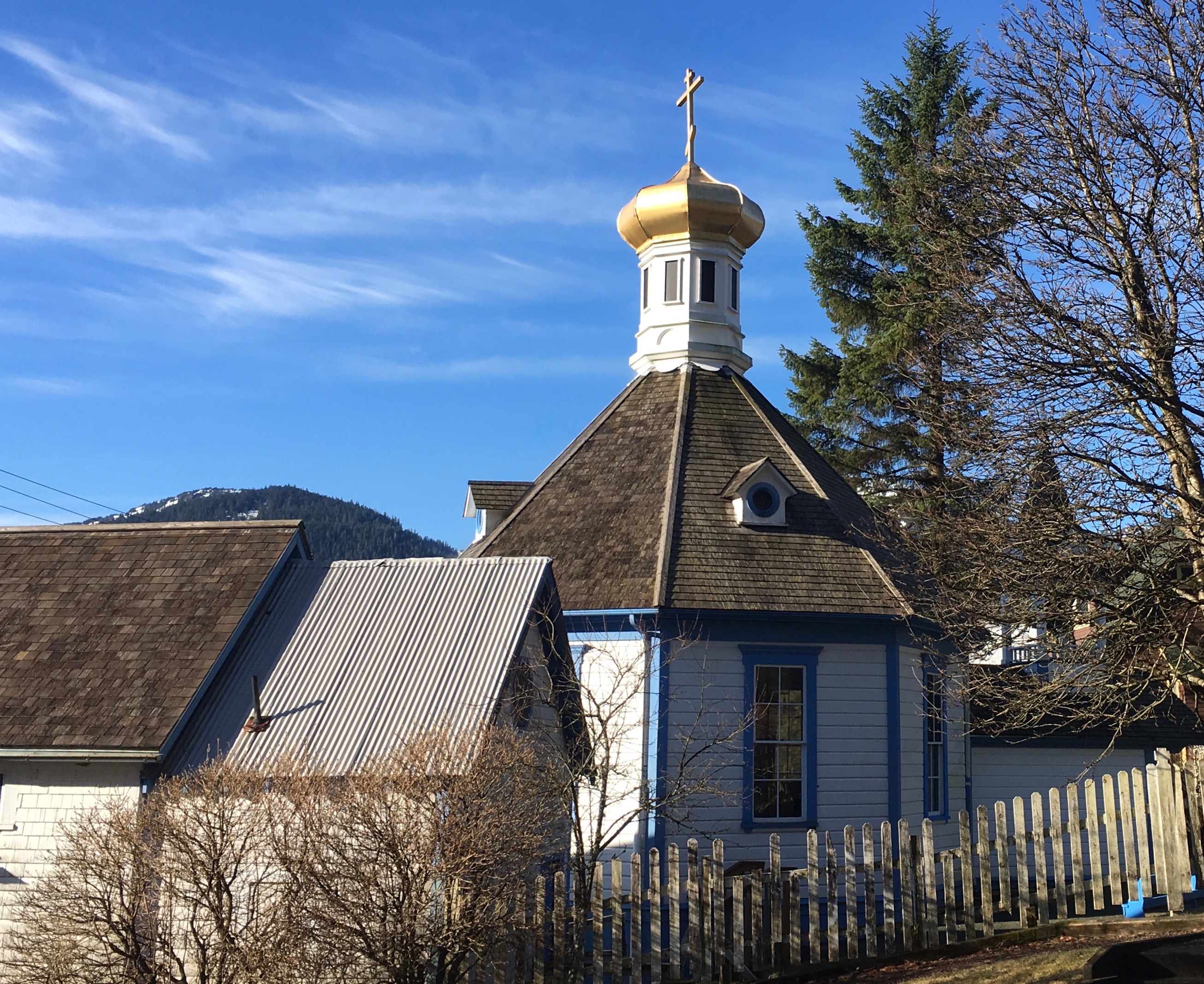 We pass the tiny Russian church, thankful for the person who refreshed the gold paint on its onion dome. I seem to be giving thanks often this morning. Aki looks thankful for the sunshine warming her curls and the chance to check the trap line of scents she maintains on the downtown streets.
