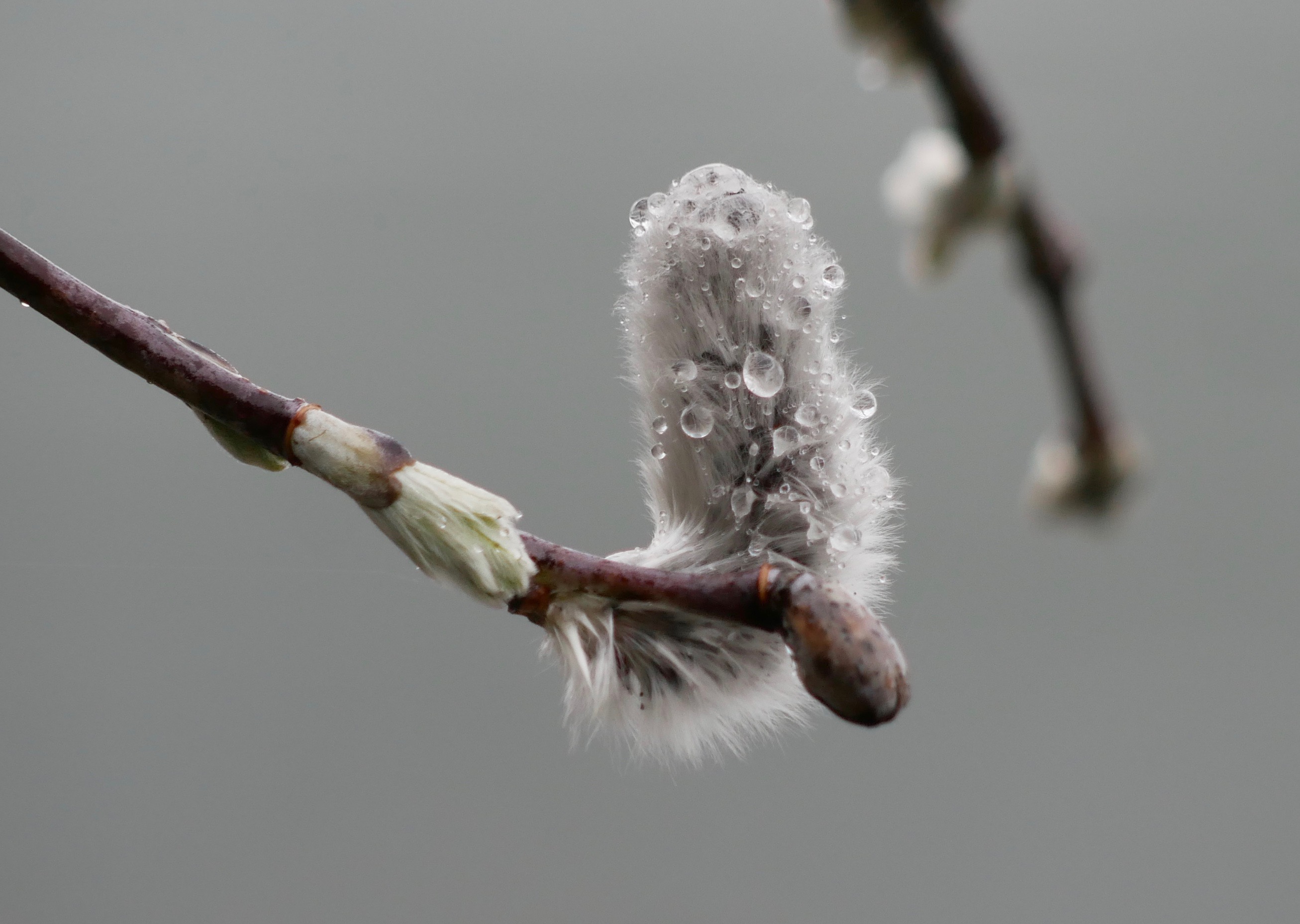 I like the rain for the way it leaves sparkling bags of water on the willow catkins and makes the forest moss sparkle. It also might be responsible for the welcomed absence of other trail users. We have the lakeshore and moraine to ourselves. We also enjoy an absence of human-made noise. Planes can’t fly thanks to the low cloud ceiling. The roar of the supercharged Nugget Falls masks the other intrusive sounds. I can only hear the pat, pat, pat of rain on my rain parka and the sharp cries of the nesting kittiwakes.