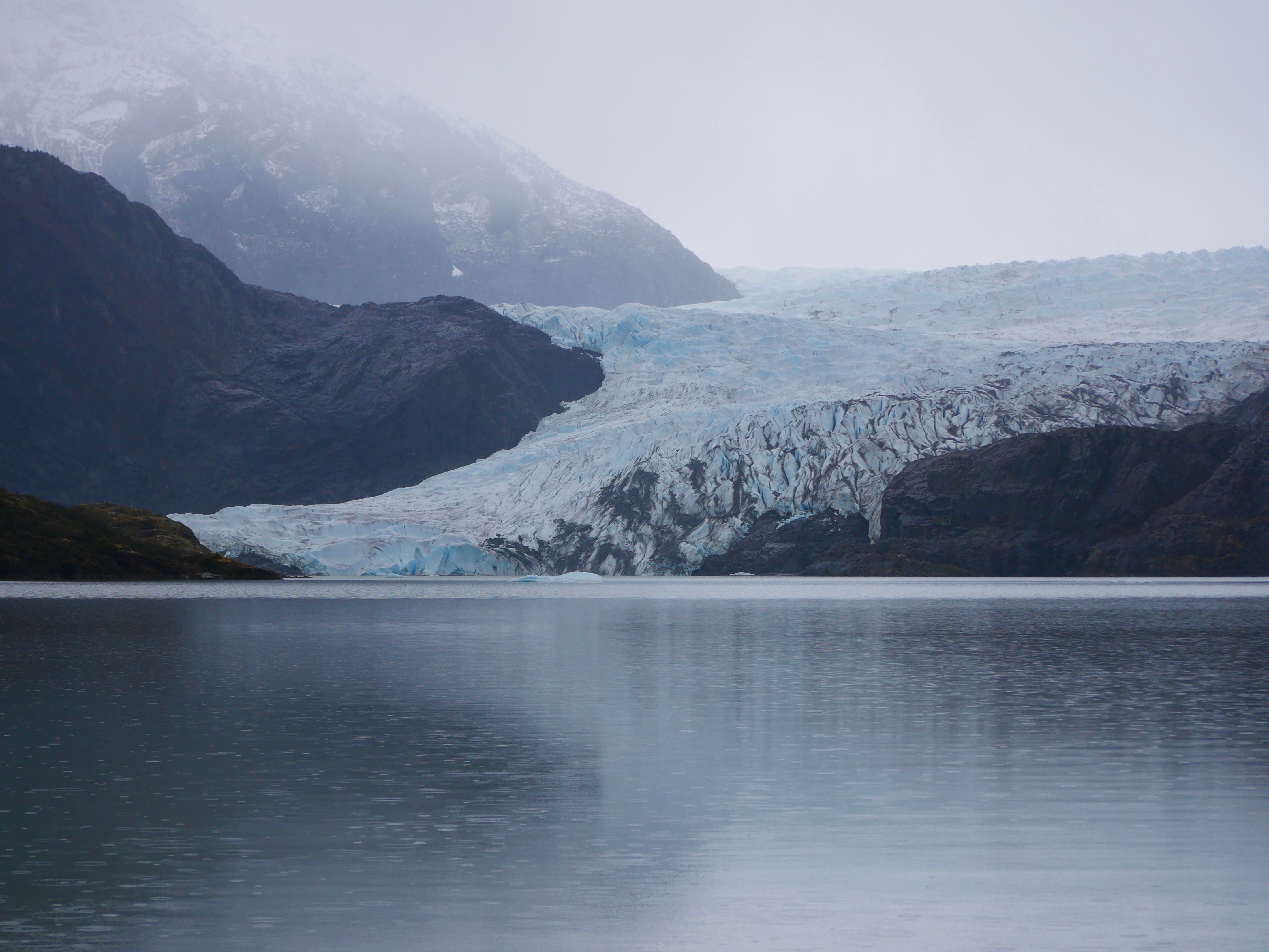 Rain pockmarks the surface of Mendenhall Lake and softens the handful of icebergs that migrated away from the glacier after the lake thawed. Across the lake kittiwakes reoccupy their traditional nesting sites. They don’t seem bothered by the persistent precipitation.