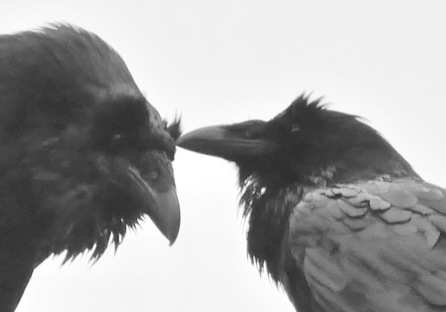 While climbing up Main Street we spot two ravens in conversation. The smaller of the two birds is upbraiding the larger one, which is bent almost in half in supplication as the lecture ends. Ravens are the most human of birds.