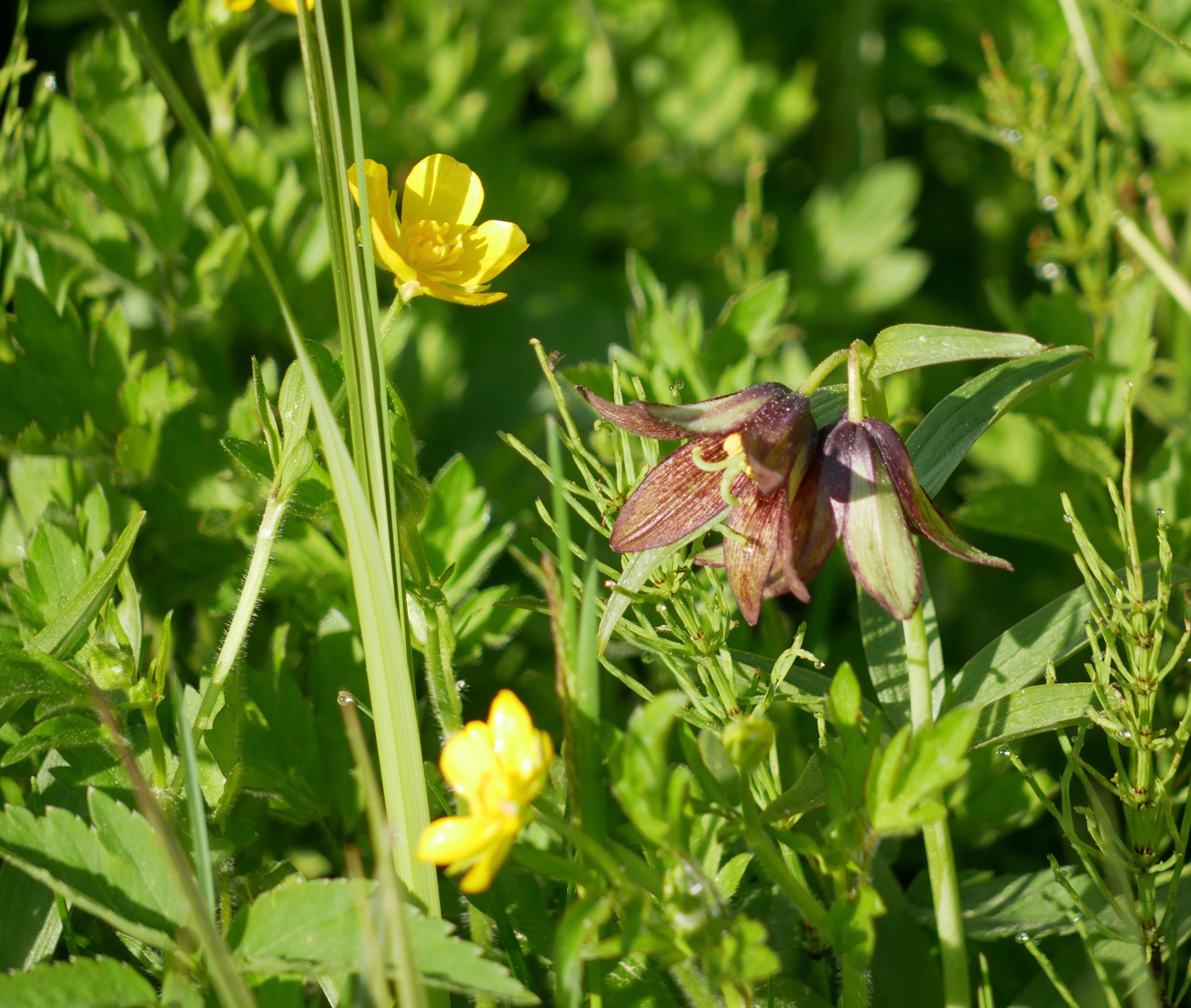 The little dog and I press on, my spirited lifted by the strong display of wildflowers on the spit that separates the creek from Fritz Cove. Purple lupine stalks dominate but must still compete with older swatches of magenta shooting stars and yellow buttercups. A single chocolate lily opens In the middle of the established flowers.