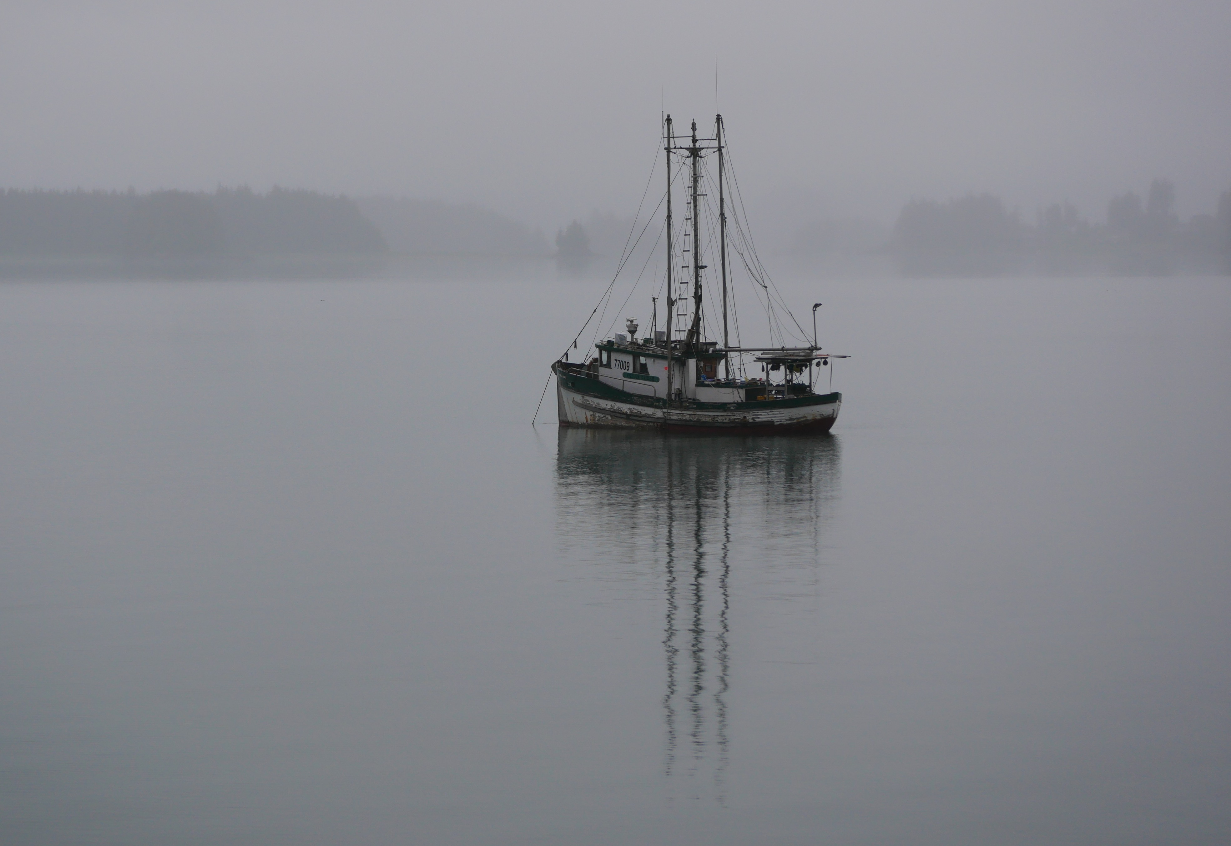 No one would call all these small beauties exciting. But I’m fine with that. We had out excitement quota filled for the day when I stopped for a moment at the boat ramp. The old troller boat that had been beached was now afloat just offshore. I wanted to photograph it against a background of the smuggler cove islands softened by low lying clouds. Twenty meters away two eagles fought over a scrap of fish. The winner carried it down the beach, leaving the loser to sulk.