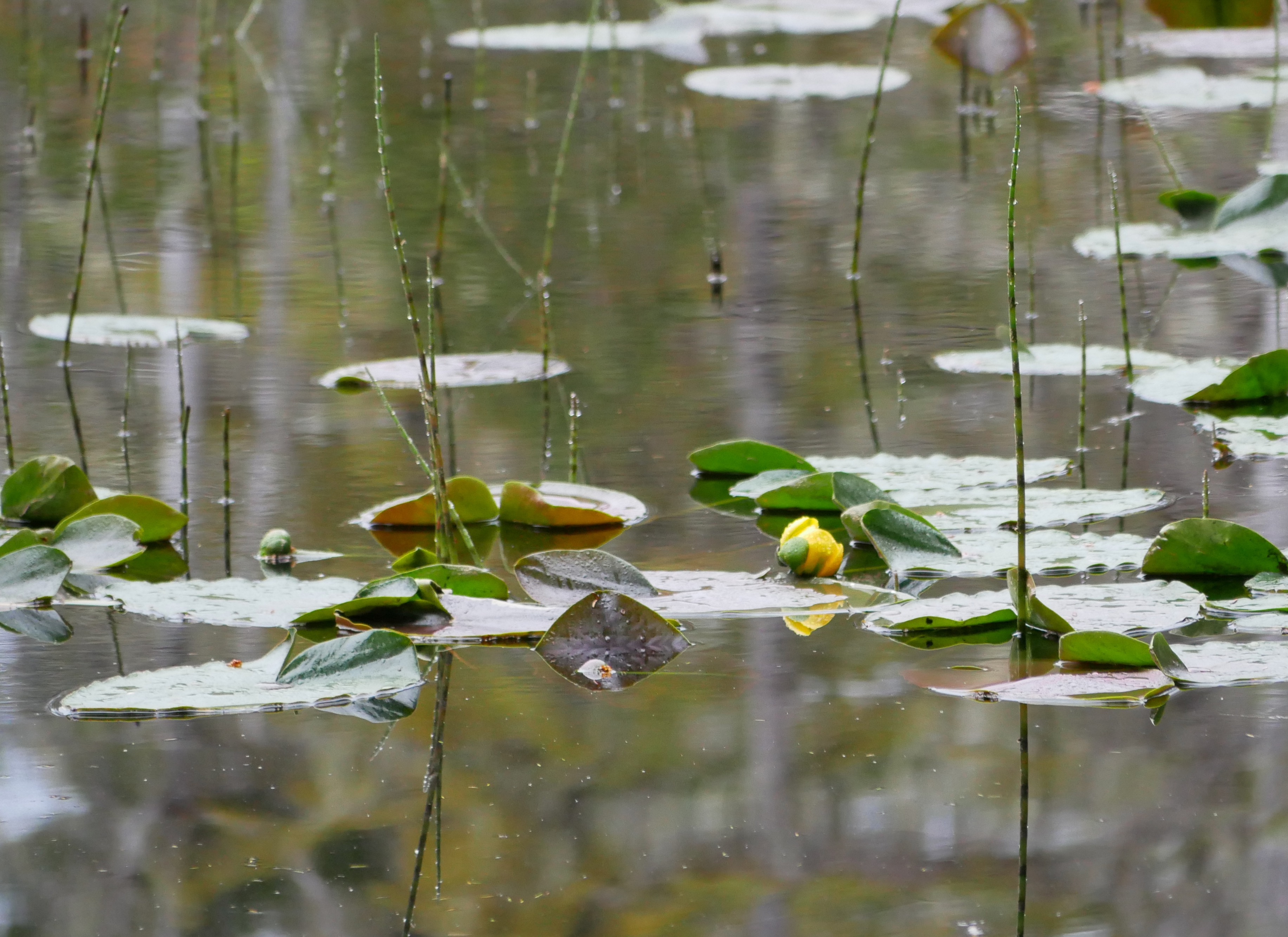 The flowering forest plants are ahead of schedule. Tiny green balls have already replaced the lantern-shaped flowers on blueberry bushes. Yellow water lily flowers unfold onto the surface of the beaver pond. The fallen petals of cloudberry flowers dot the muskeg meadow we must cross to reach the beach.