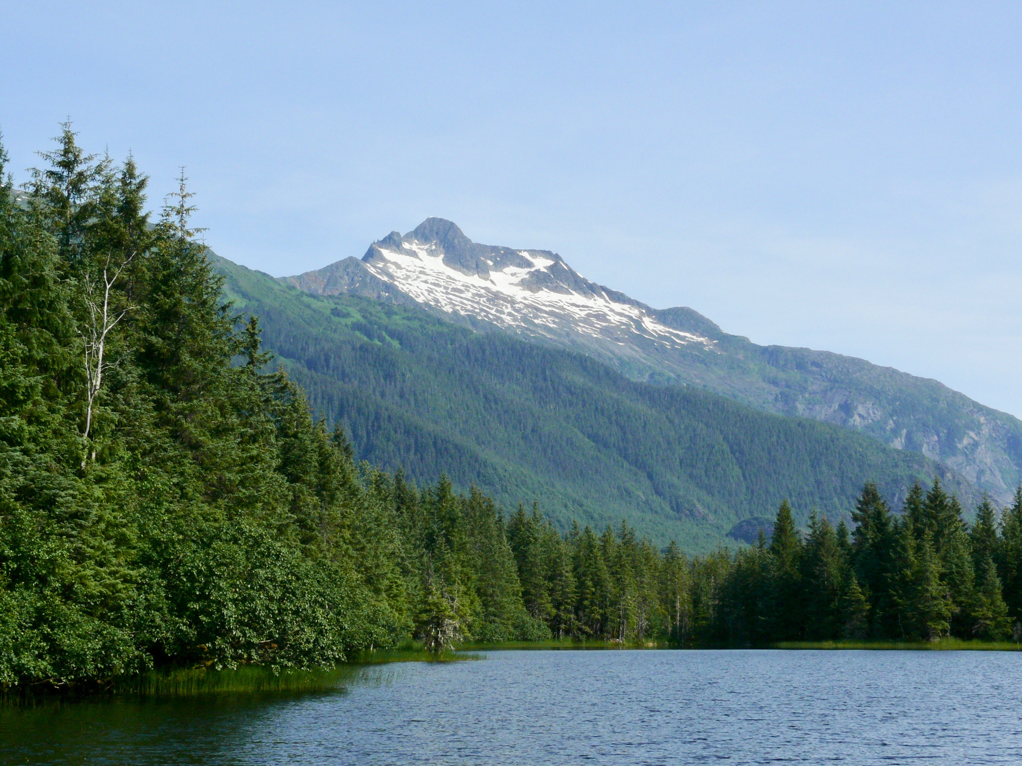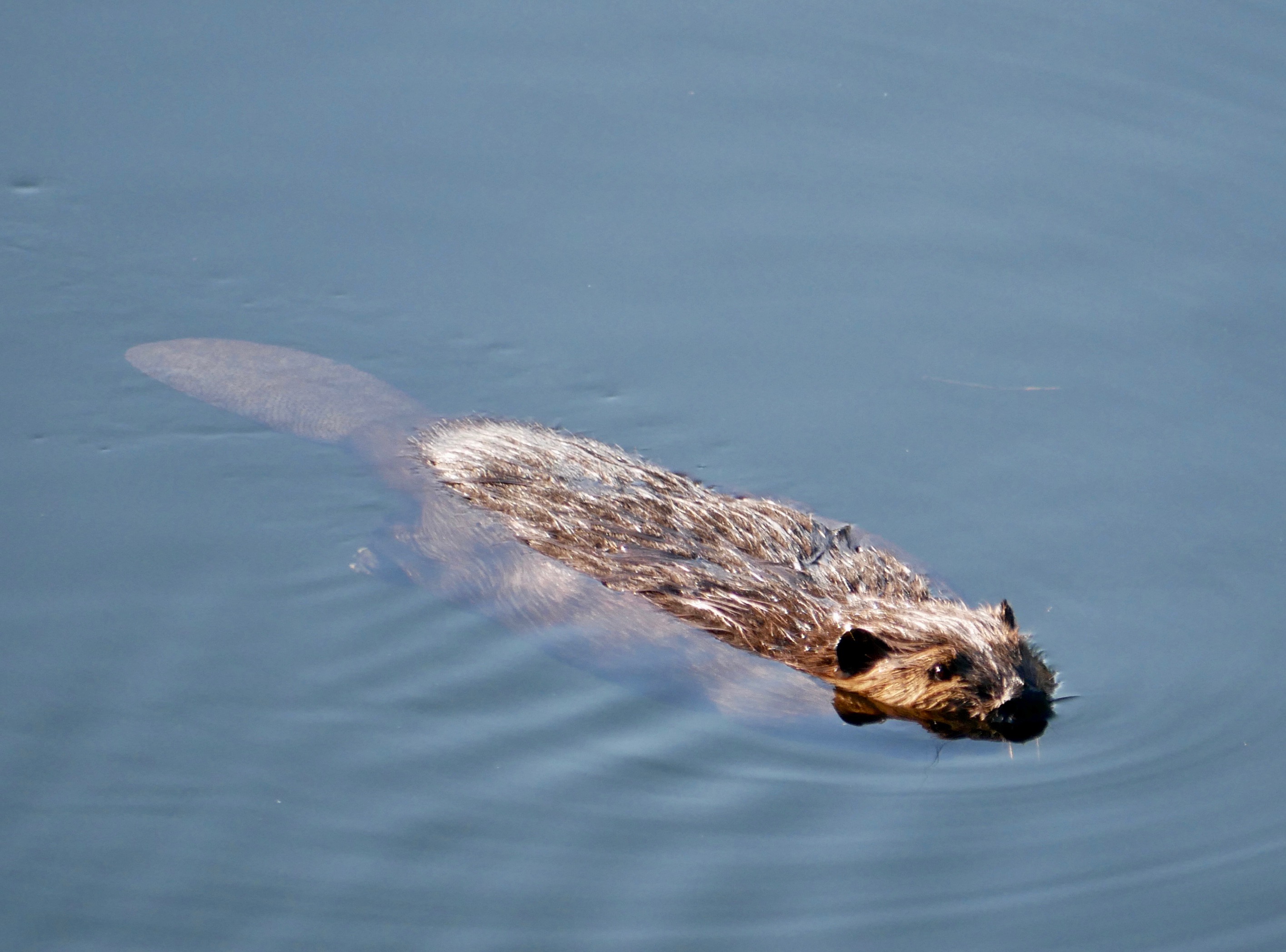 Three or four king salmon broke the surface of the pond as we circled it. A beaver munched on wild flowers on the near shore. I tried to sneak by the beaver but tripped on a root. The noise panicked the big rodent into the water where it slapped its tail to warn the rest of the clan. Satisfied that I wasn’t a wolf or coyote, the beaver swan toward the little dog and I. It stopped a few meters offshore and closed its eyes. After a quick nap, it paddled away.