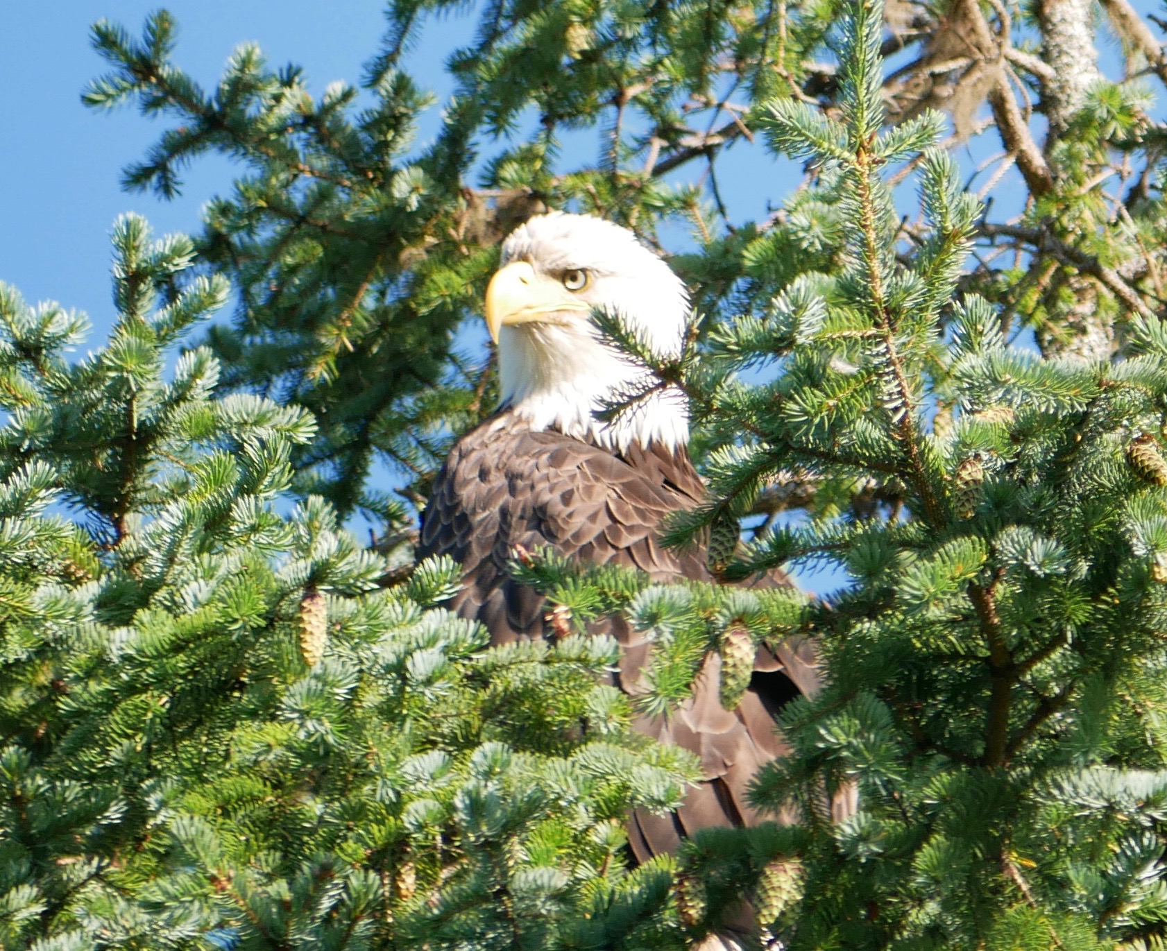 The big bird was perched in the top of a short spruce tree. I stopped the car just twenty feet away. The eagle looked to be contemplating the view up Lynn Canal or maybe just enjoying the feel of sunshine drying out his rain-dampened feathers. An audio version of Nina George’s “The Little Paris Book Store” was playing on the car stereo. As one of the actors described the meeting of the protagonist and his lover, the eagle turned and looked at us with its eyebrow raised, as if questioning my taste in books.