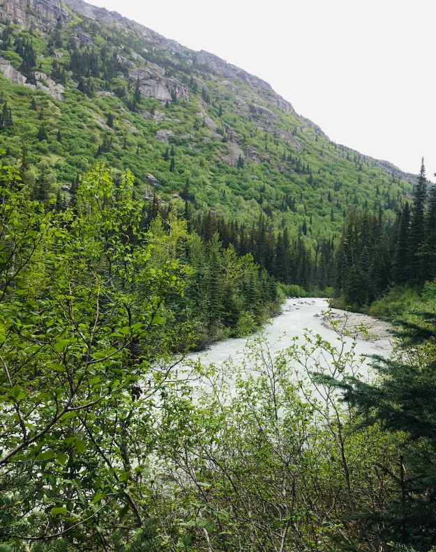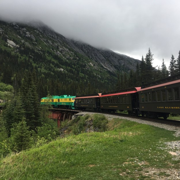 It’s early morning. Rain spots the windows of a railcar hauling forty writers toward the glacier trailhead. Some of the writers are published. Two are well established. All of us are talking loud enough to be heard over the creaks and grumbles of the White Pass Yukon train car. If each writer were making this trip solo, we would be quiet observers. We’d pay attention to the amplified, chipper voice that calls our attention to the U.S. Custom’s station on the Alaska border and then a great view of Skagway Harbor.