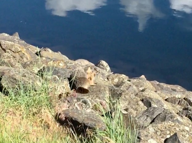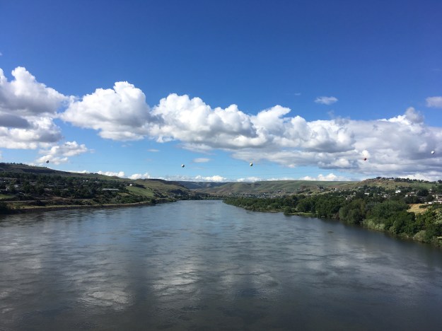 I am on the dike that protects Lewiston, Idaho from the Clearwater River. Aki would like the sunshine and cool, early morning temperature. She would be intrigued by the marmot that just ran across the bike path. If my little dog were here the marmot have slipped under a rock for protection. Instead the long-tailed rodent is only 7 meters away, enjoying the prairie light.