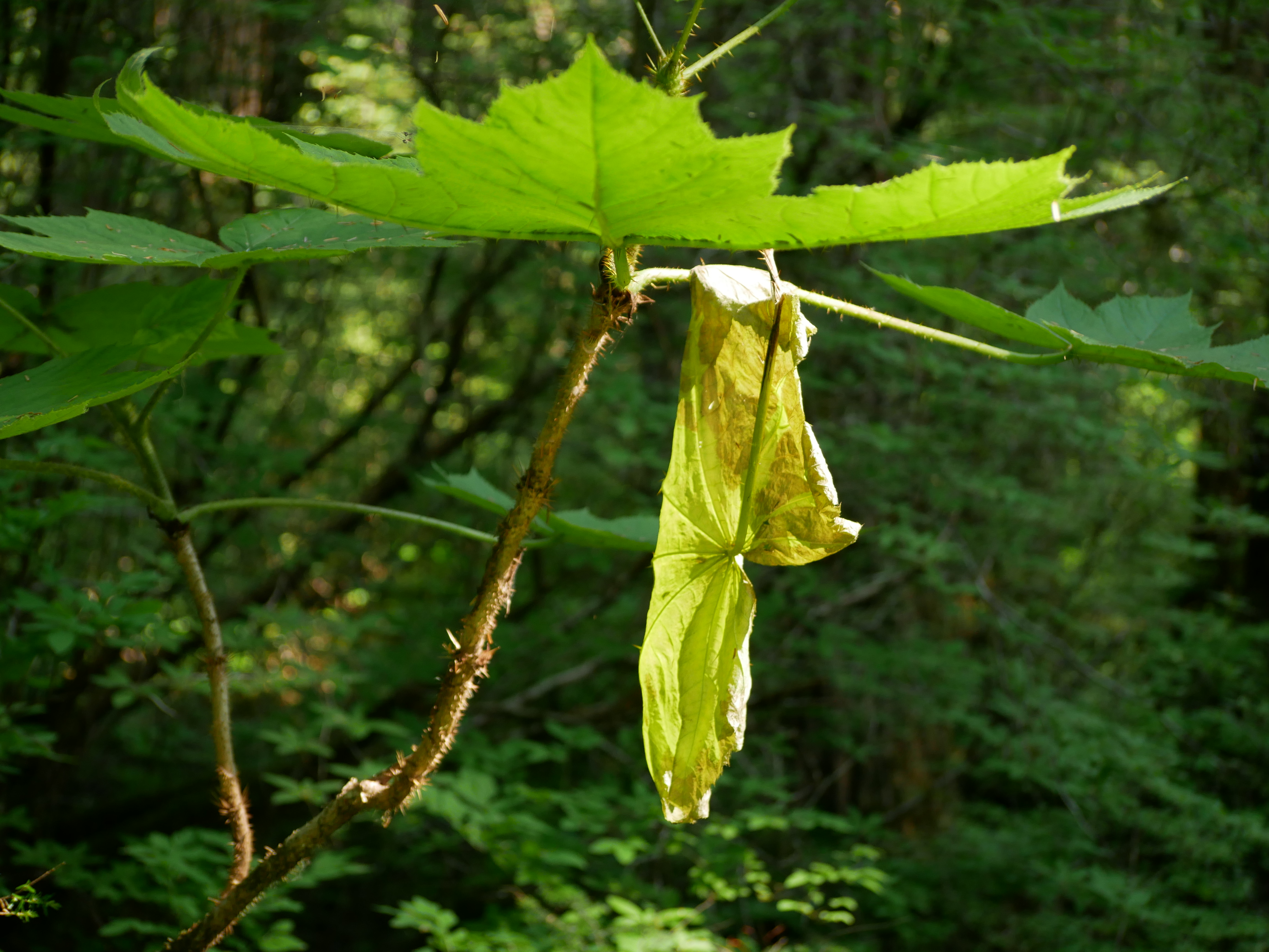 Smokey air has reduced the Chilkat Mountains to smudges on the horizon. Aki finds plenty of strong smells to investigate. I use my eyes and ears to a fruitless search for surfacing humpback whales, seals, or ducks. We heard an eagle while walking through the forest. But none screams here. Even the sea is quiet. Then a song sparrow settles into the crotch of a cow parsnip plant and sings its “sweet, sweet, sweet” tune.