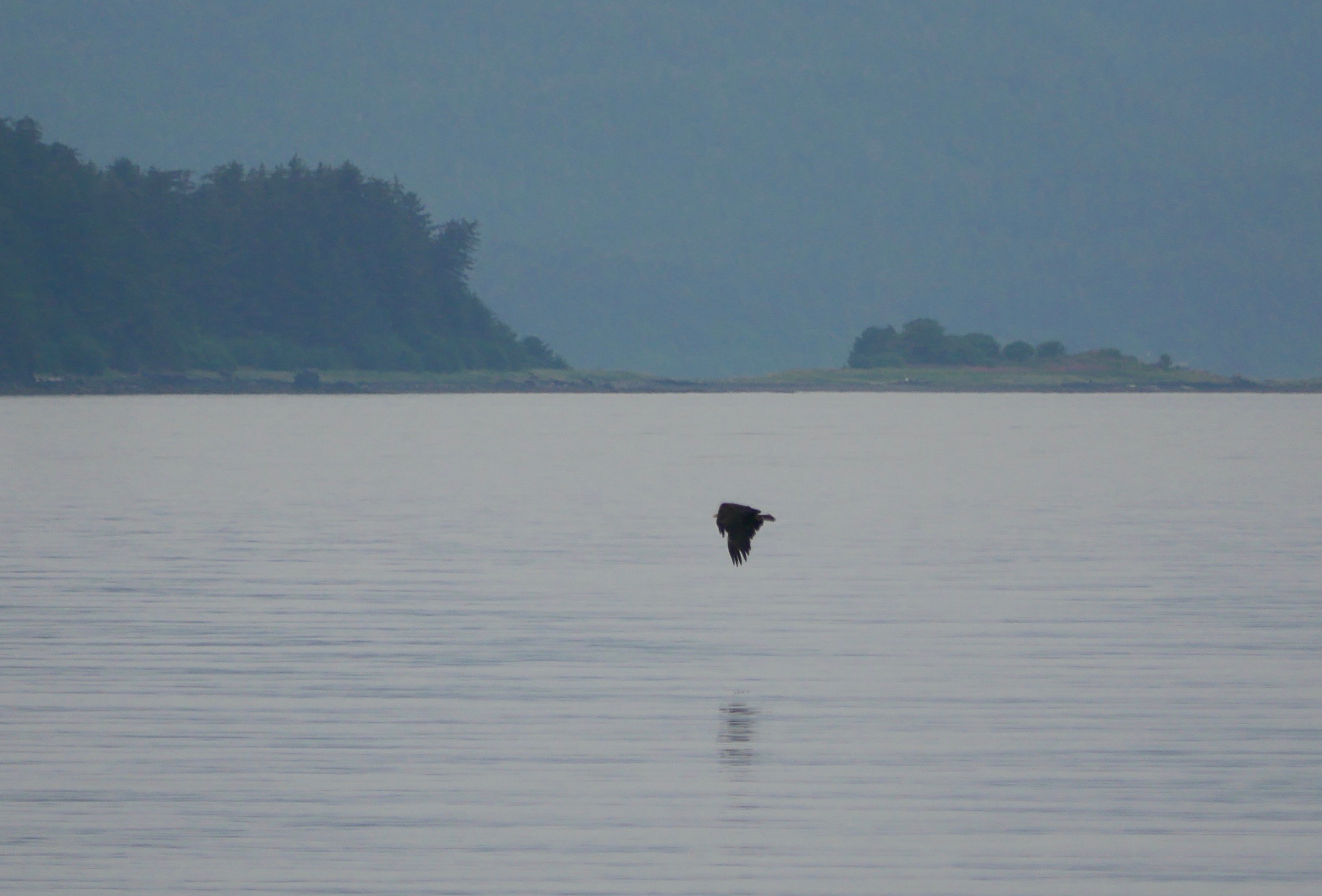 What a difference a few days can make. It was hot during our last visit to this rain forest. Forest fire smoke had turned the sky gray. The sky is grey today but colored so by clouds, not smoke. It is cool enough to need a sweatshirt to keep warm. Last week the trail was jammed with kids and their parents—all heading toward the tidal flats or Shaman Island. This morning the trailhead lot was empty until I parked there.