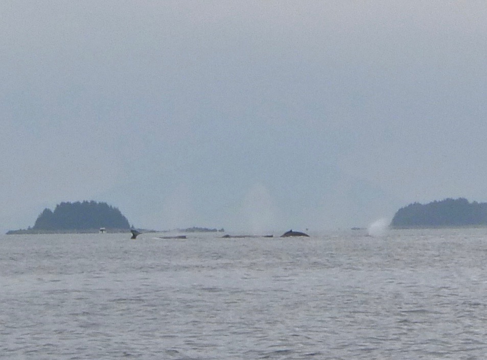 We already passed four humpback whales in the pass. But up ahead, just off Point Retreat, a pod of them will be bubble feeding. They will swim circles around krill, forming a net of bubbles that will hold their favorite food in place. Some of the pod will burst up through the krill, jaws open wide. The rest will chase the remaining krill before forming a new net of bubbles around their prey.