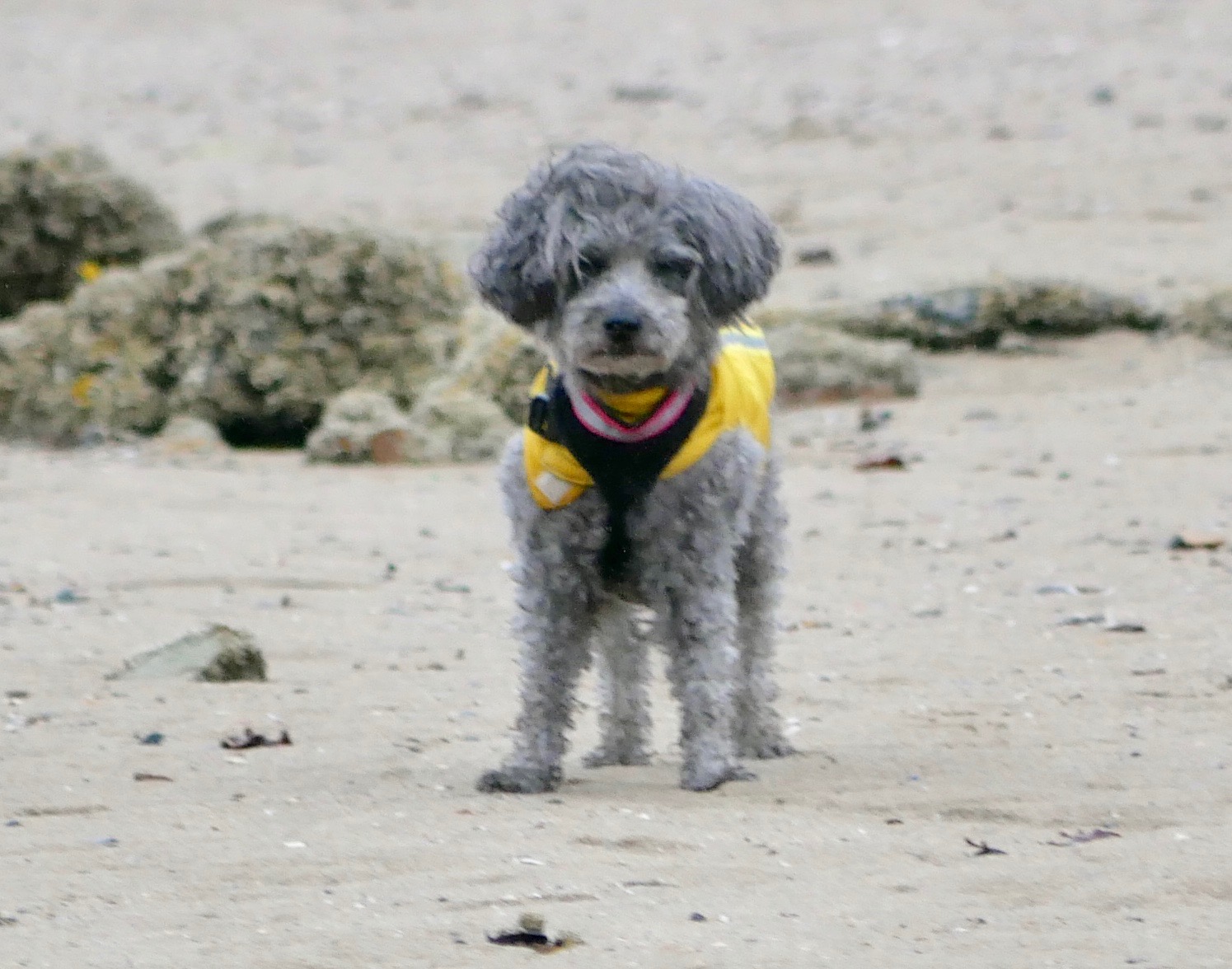 Low clouds hide most of the Gastineau Channel and the mountains that line it when we drop onto the beach. The rainstorm that soaked the woods last night continues to drop much needed rain. My pants and Aki’s fur were soaked when we passed through a grassy verge to reach Sandy Beach.