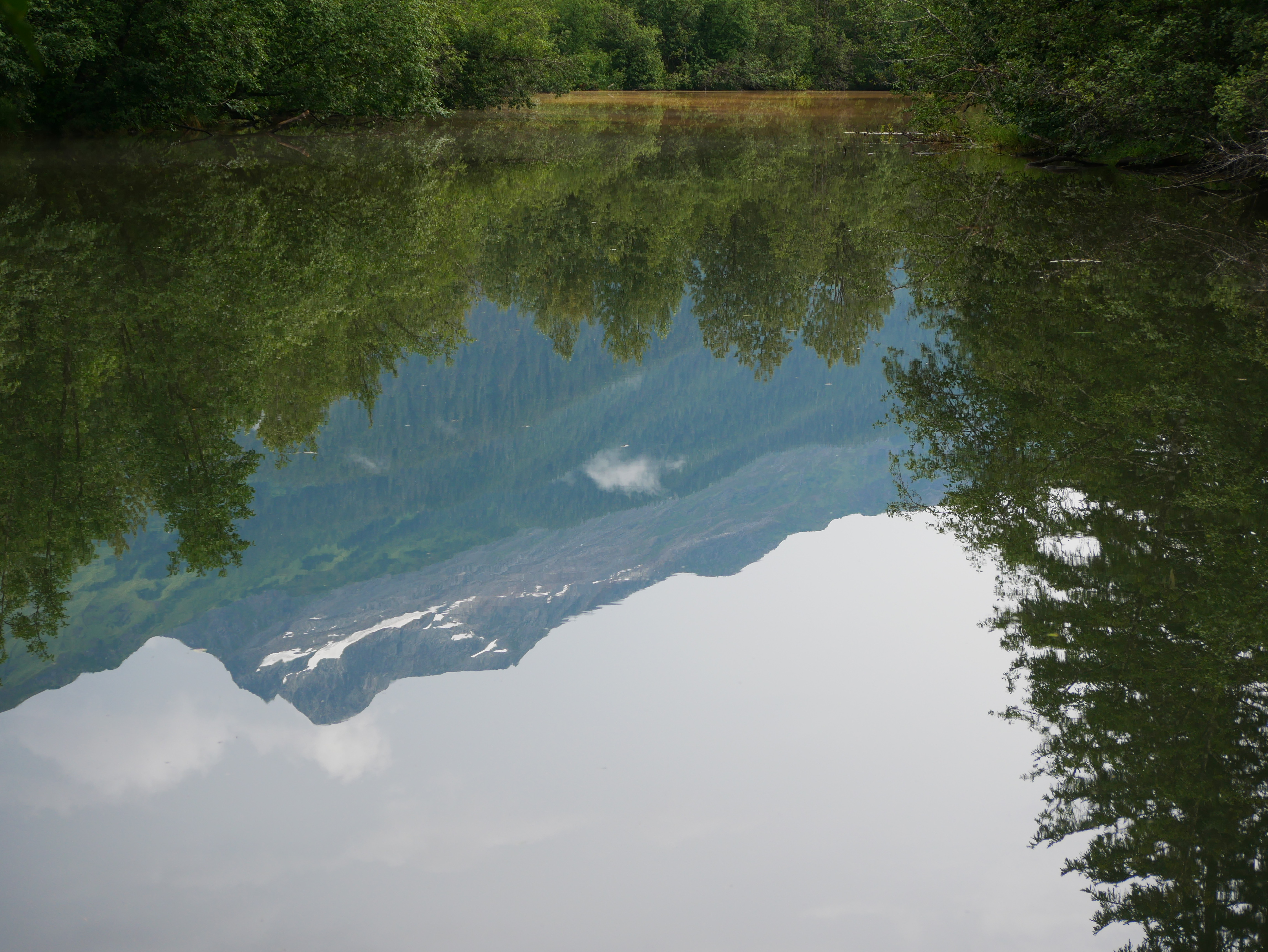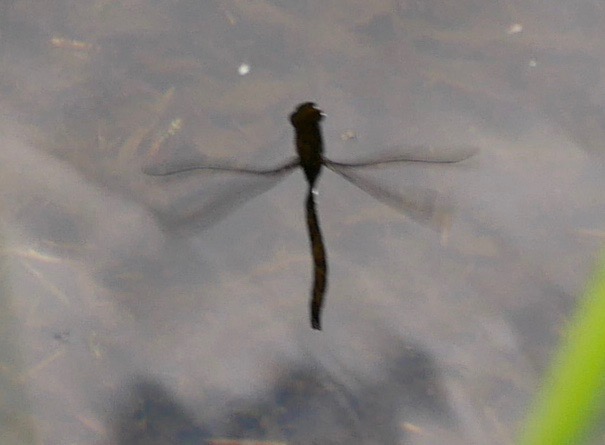 Aki stares at me while I stare at the empty surface of a lake. We are deep in the Troll Woods, a place that the little dog loves to investigate using her nose. She has already catalogued all the smells within her reach. Her patience must be about to run out. But I am not ready to leave until I get a photograph of the dragonflies.