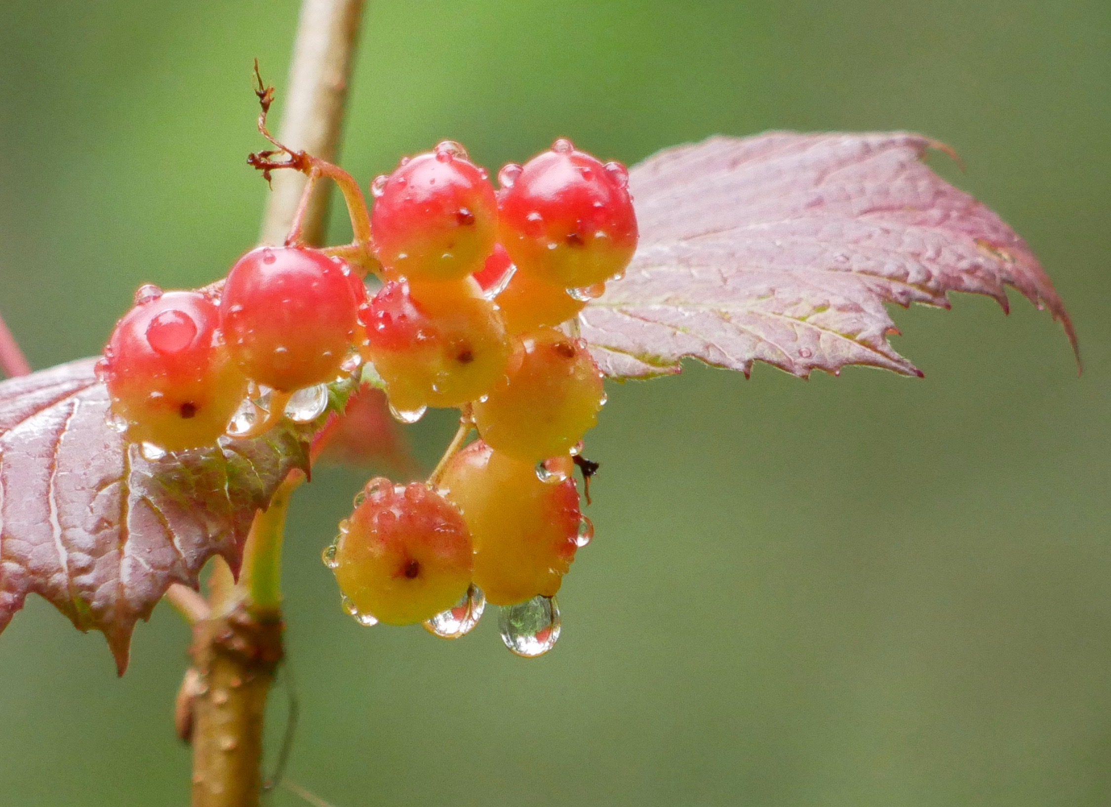 At home I will sort through forty or fifty photographs, most will show empty lake water. A few will feature blurry versions of the dragonflies. Only one will capture with some clarity, one the patrolling pair. I will be relieved that I spent a few minutes in the woods photographing high bush cranberries dripping rain.