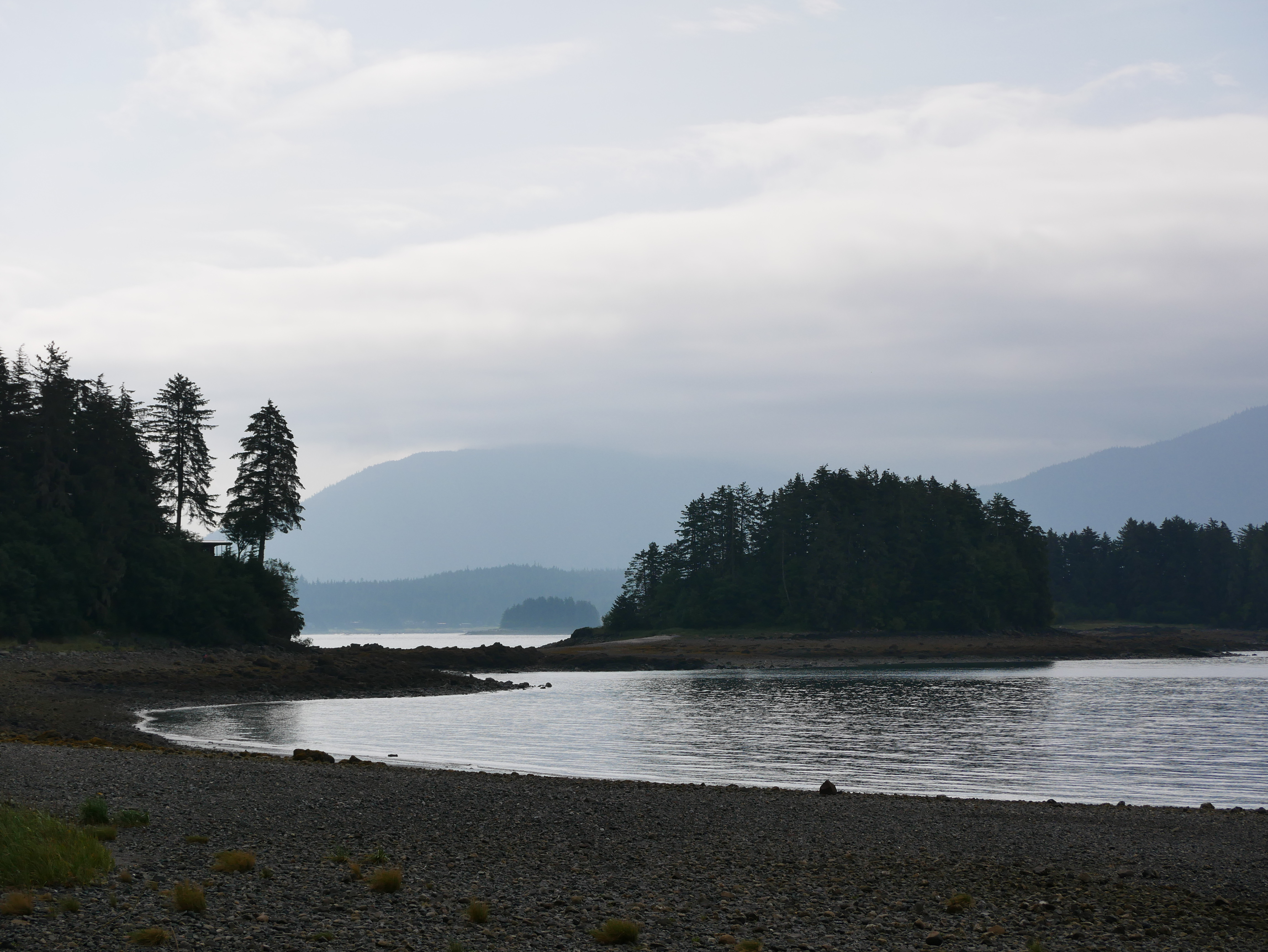 Why are people so noisy? Aki doesn’t answer. Somehow she is twenty meters away, sniffing her way along a hedge of thimbleberry bushes that line the beach. I am close to the water, where the sounds of a small surf blocks out the voices of the other people walking along the Auk Rec beach.