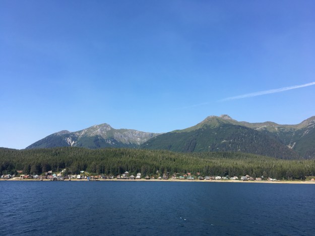 This morning Aki watched me board the MV LeConte for Tenakee Hot Springs. I thought about taking her but she would have howled during the entire voyage. It was hot and sunny as so many of our mornings have been this summer. Many of the other passengers were Tlingits returning home to Angoon. This was the first ferry to reach their village since the ferry strike ended. Many of the villagers were loaded down with things purchased in Juneau. Two large panel trucks full of inventory for the village store were parked on the LeConte’s car deck.