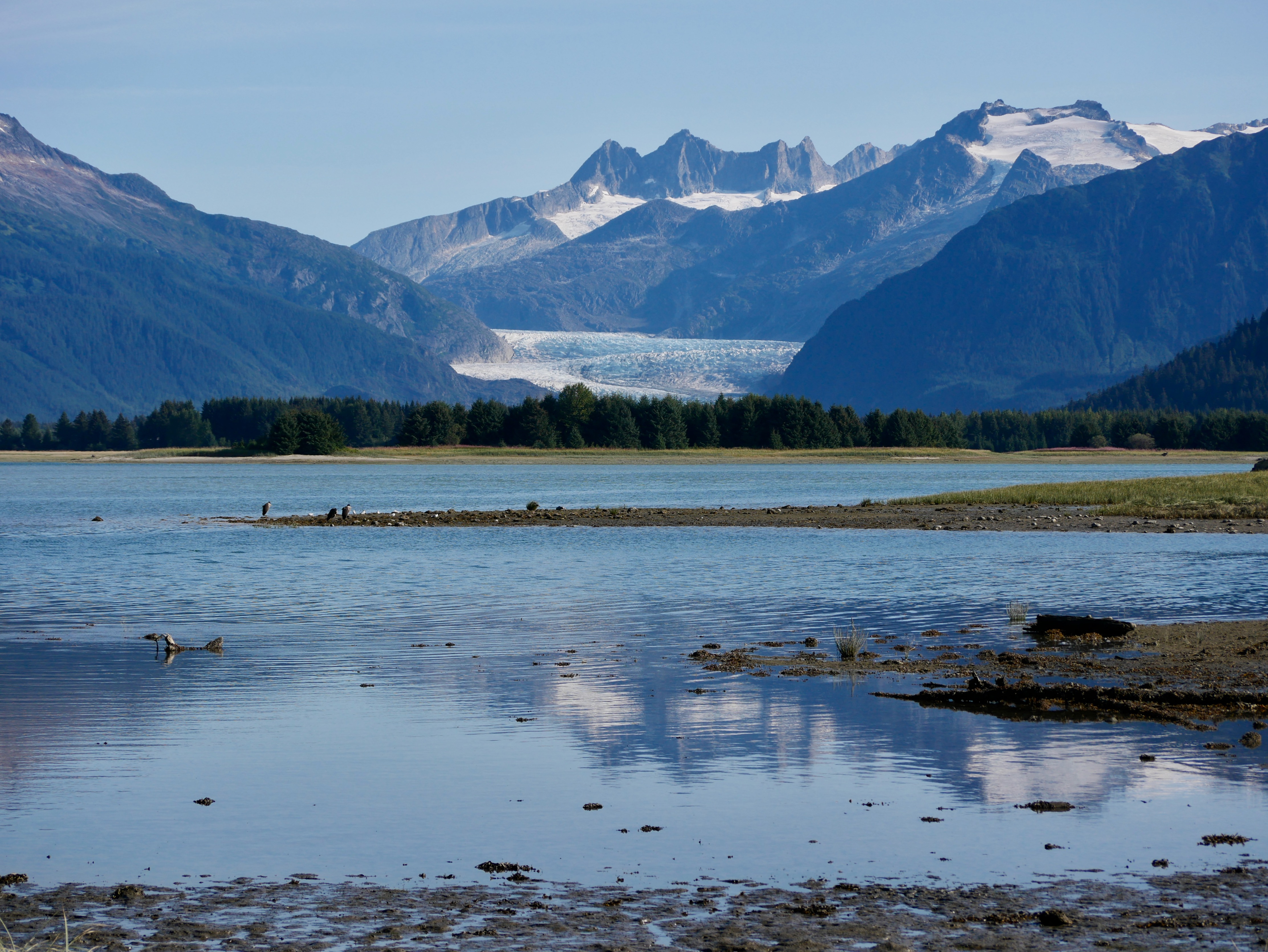 We walk down stream the pond where half-a-dozen eagles watch the fins of newly arrived pink salmon ripple the pond’s surface. I’ve seen eagles lift small salmon from the water but these guys seem content to wait until the pinks die and wash to shore.