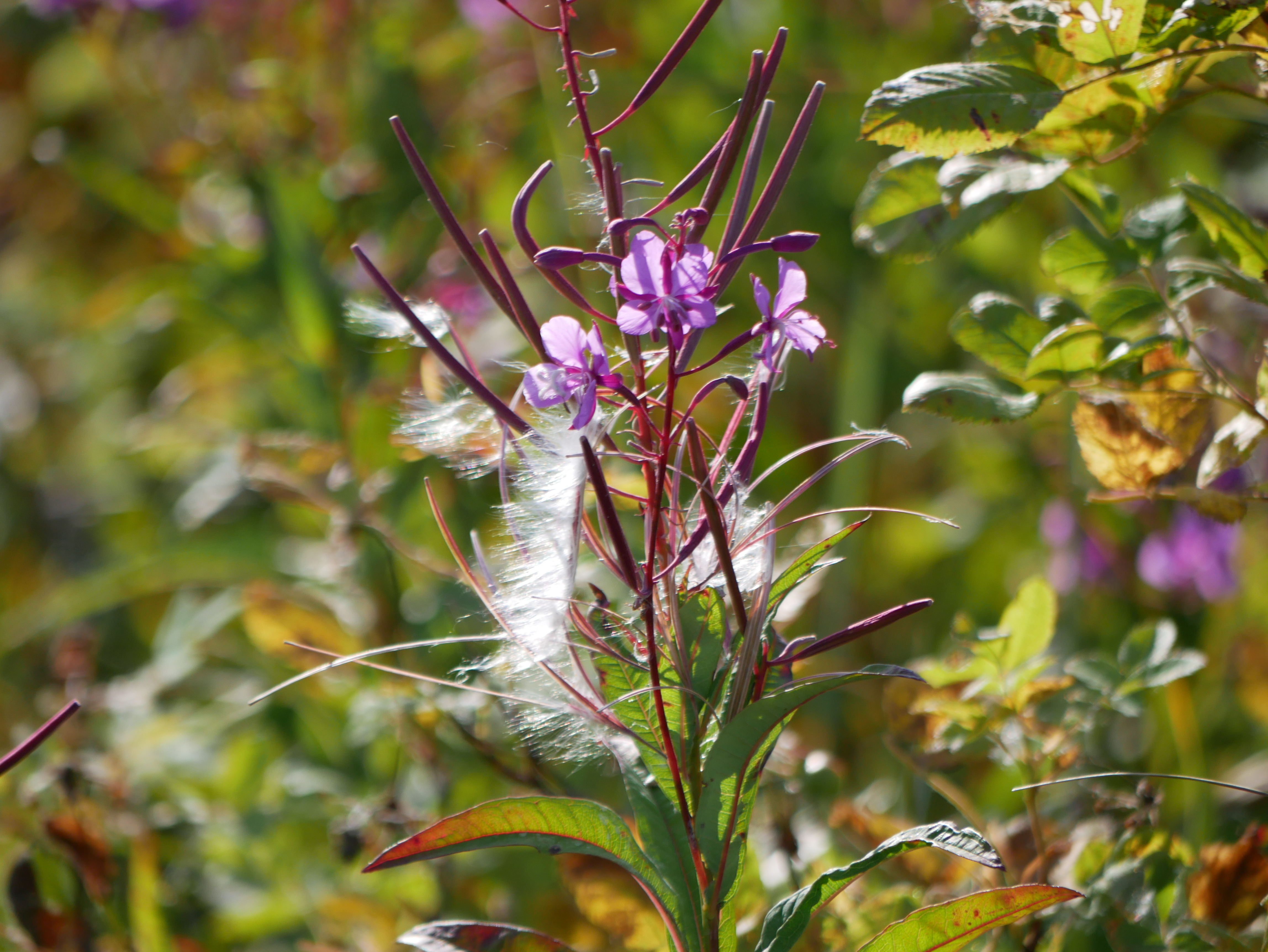 On the way to the stream mouth, we walk between 7-foot tall fireweed stalks. Some have already stopped flowering. They release seedcases as fluffy as down that ride on this morning’s light breeze across the stream.