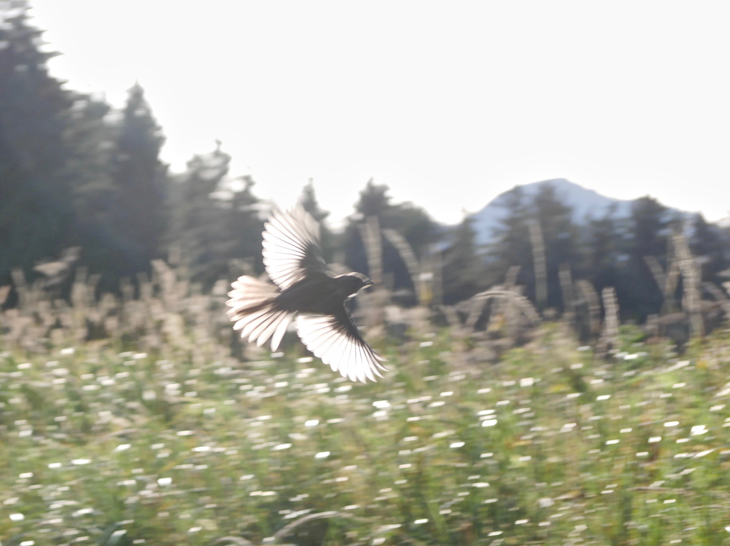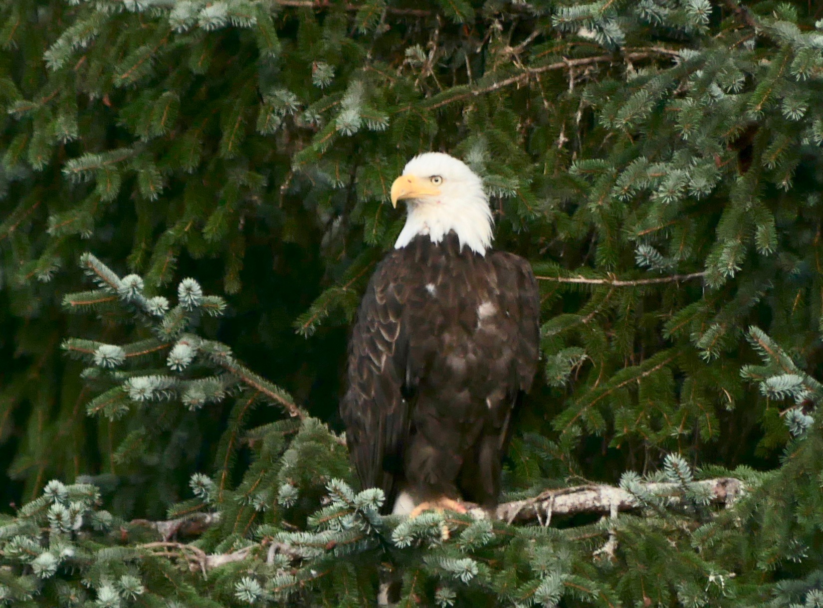 On a spit covered with fireweed stalks and meadow grass already succumbing to fall, gangs of sparrows search the ground for food. The little brown birds spring up like grasshoppers when we walk down the trail. No eagles wait for us at the stream mouth, just more gulls and one raven flying over the creek delta as if it were an eagle.